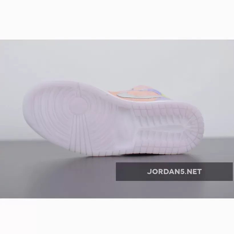 these sneakers are a calling to the clouds as its overlays are treated with cumulus-inspired graphics arranged with accents of pastel volts and purples. Underneath, its suede-constructed base paneling and tongues are dyed identically to a peachy tone, while its Swooshes alternate between metallic silver appearances on the lateral side, and angelic finishes on the medial.