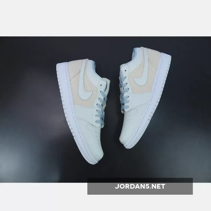 The Air Jordan 1 Low Canvas Blue Beige features a rare dainty take on the basketball slash lifestyle silhouette. Gone is the typical AJ1 colourway arrangement and in its place is an ethereal palette showcasing a light blue leather upper that’s nicely complemented with beige canvas side panels.