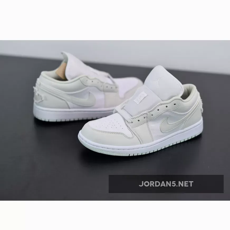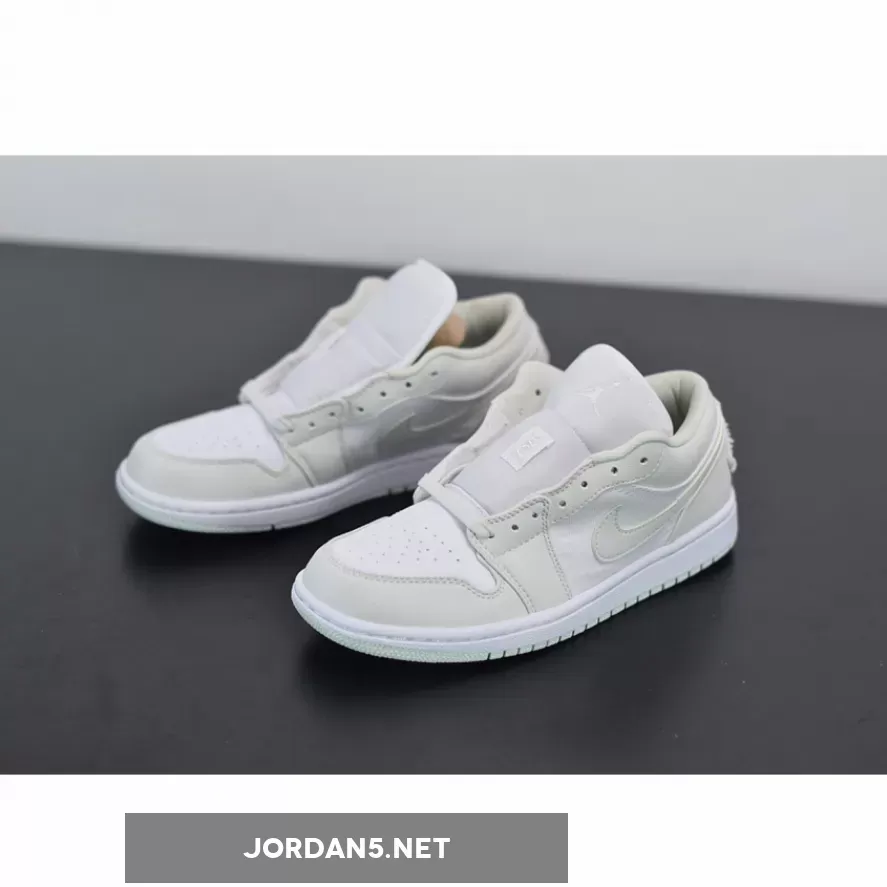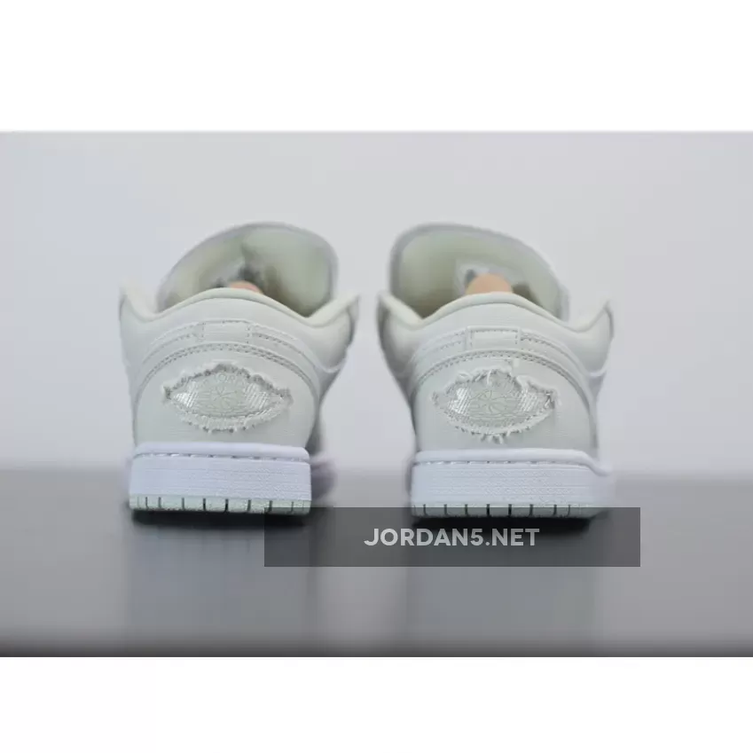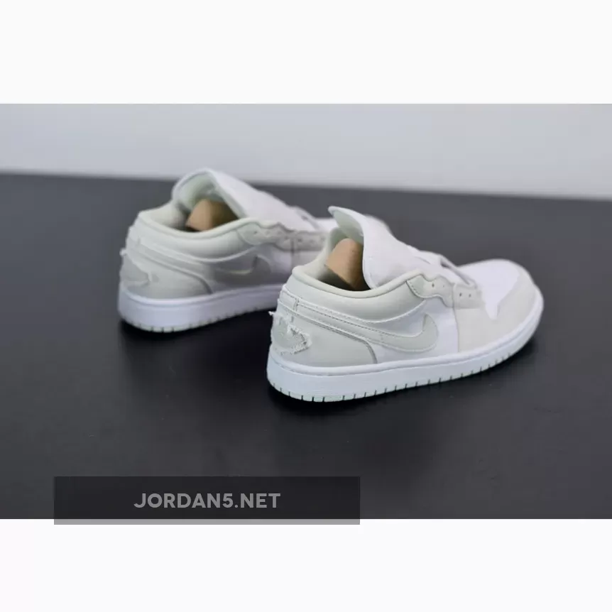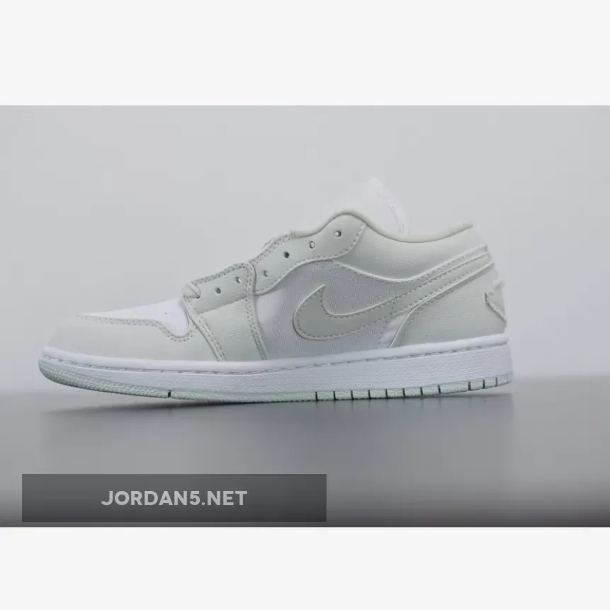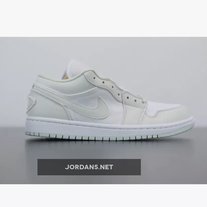 Recently surfaced on the Jordan 1 Mid, the pastel-green hue covers all of this pair’s canvas twill overlays: mudguards, quarter panels, profile Swooshes, and heel swathes. Everything else uptop, save for Jumpman, “23” and frayed ball-and-wings logos, are done in “White.” Underneath, the Spring-ready vibes continue as colorless midsoles are livened up with “Spruce Aura” outsoles, just as on the aforementioned AJ1 Mid. However, given the Low’s shorter height, it’s unquestionably better-suited for the warmer months than its taller counterparts.