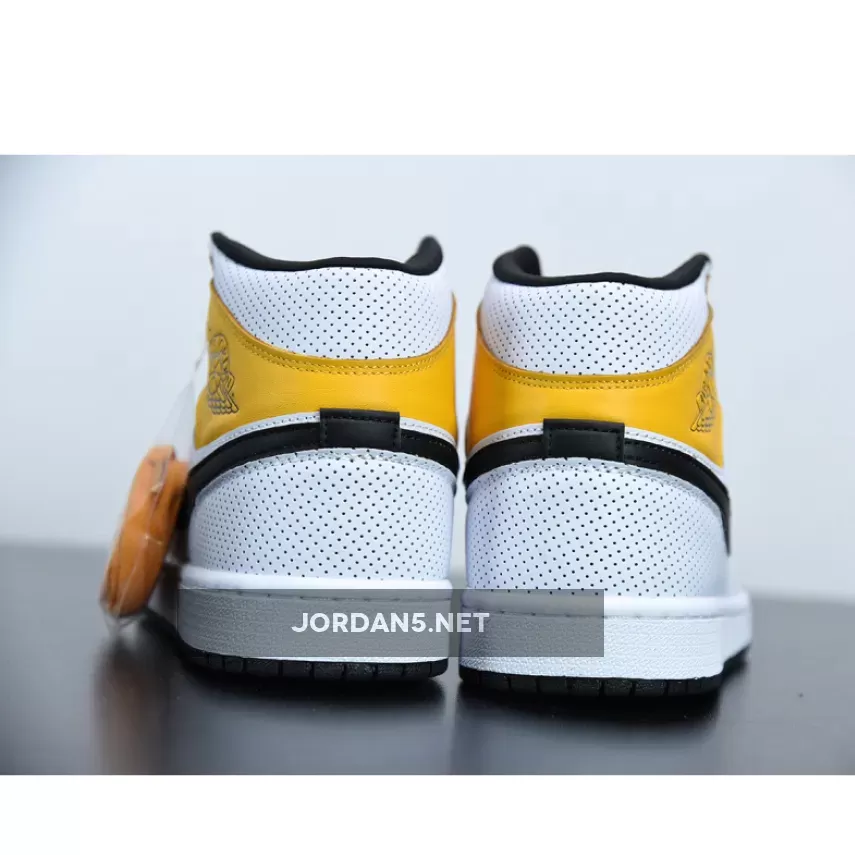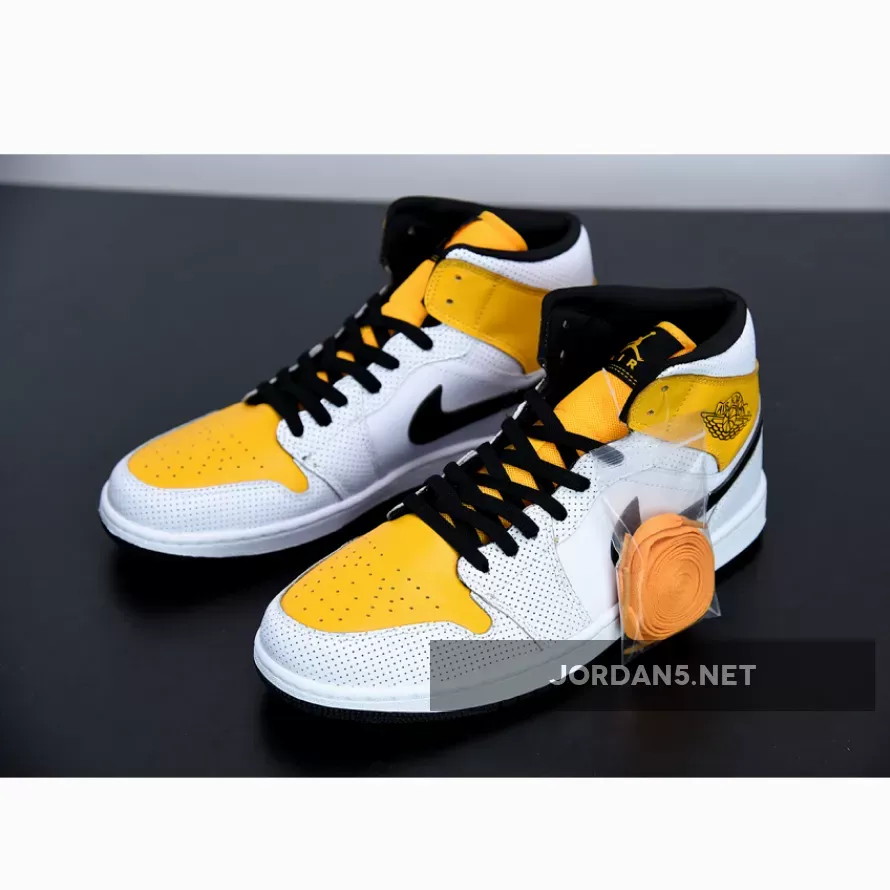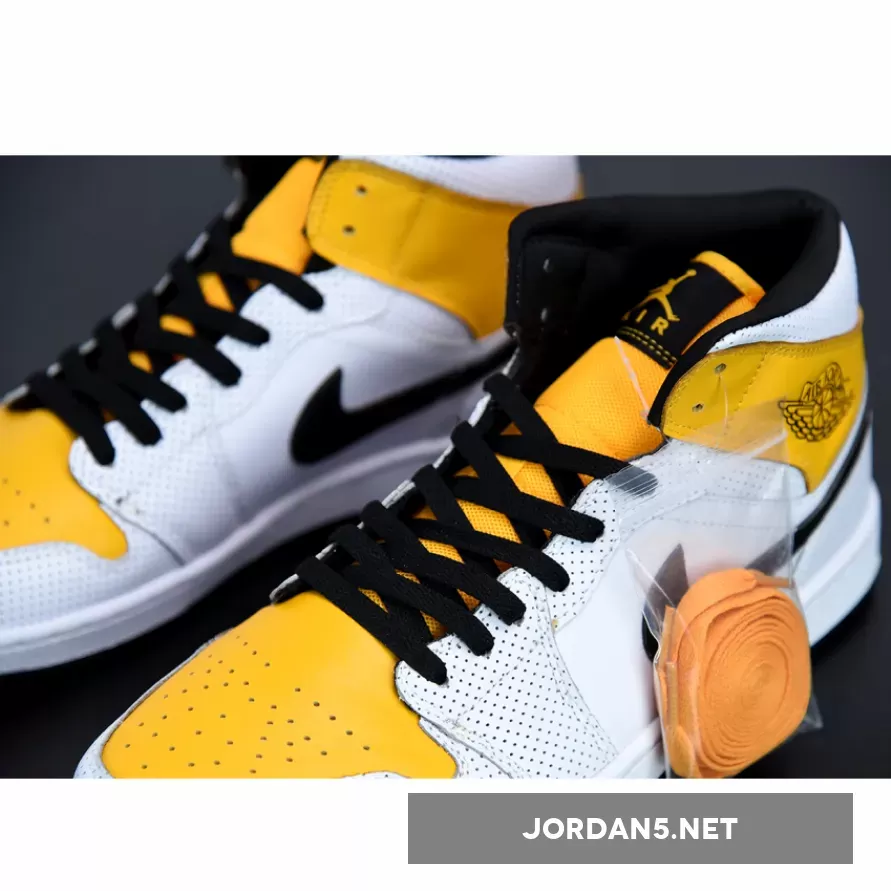 Solid mid-top Air Jordan 1s. White leather base with UV-Gold overlays & perforations = breathable & stylish. Quality’s decent, could be better for the price. #AJ1Mid #LaserOrange
