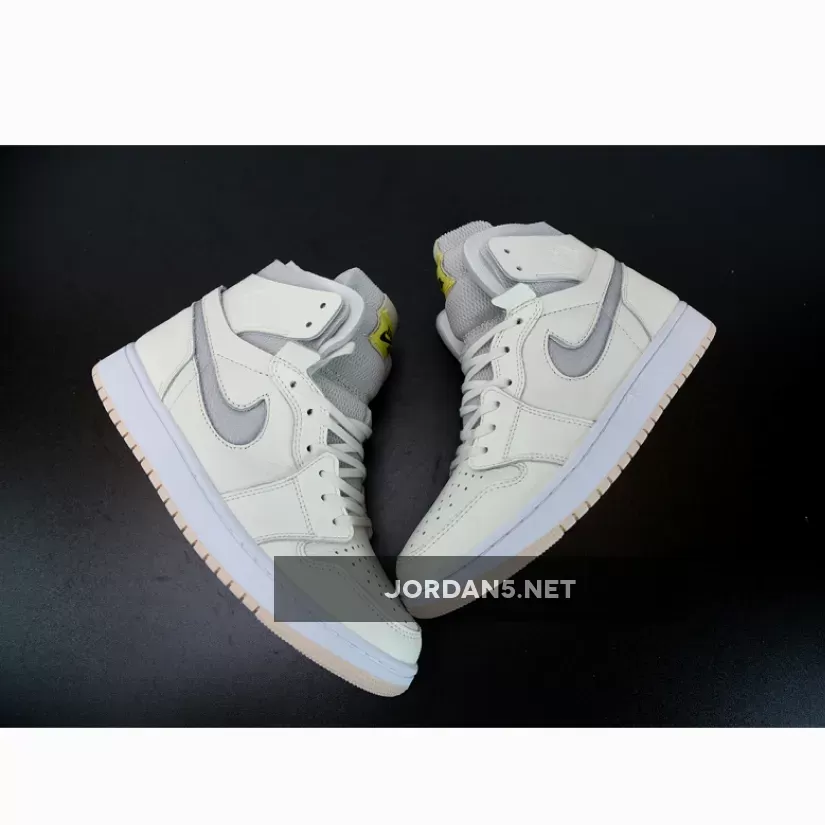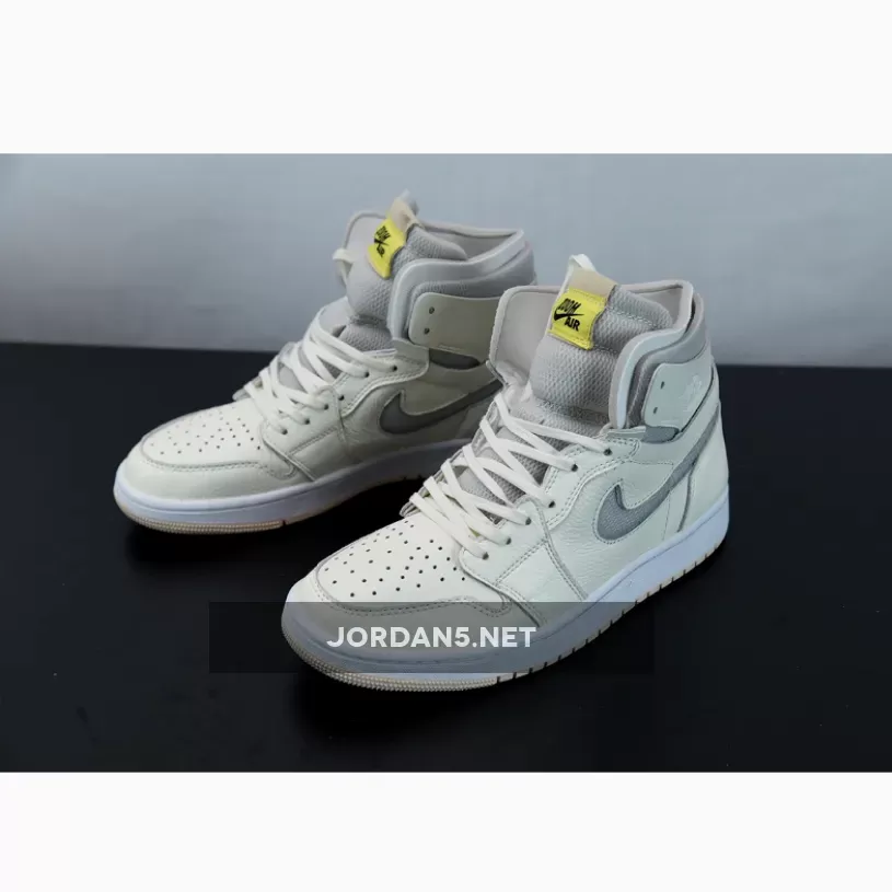 the Air Jordan 1 Zoom CMFT “Pearl White” pops the titular color beneath the tumbled sail leathers of the upper, gracing the mesh tongues and Swoosh in-cuts in its purple-tinted hue. The aforementioned leathers reach from toe to ankle flap, the latter of which omits the traditional Wings print for a debossed finish. Elsewhere, you’ll find a white midsole capped with a soft peach tint at the outsole, while the pair’s most striking saturation — Light Voltage Yellow — rests atop the Zoom Air-branded tongues and insoles.