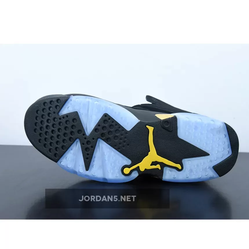 The Jordan Flight Club 91 ‘Black Metallic Gold’ showcases a familiar two-tone color scheme on a retro-inspired silhouette that takes its cues from the Air Jordan 6. The upper is crafted from black nubuck and features tonal leather overlays at the forefoot and heel, the latter accented with an embroidered Jumpman logo in metallic gold. Overt nods to the AJ6 include a windowed tongue, a polyurethane midsole with visible Air-sole cushioning in the heel, and a translucent rubber outsole.