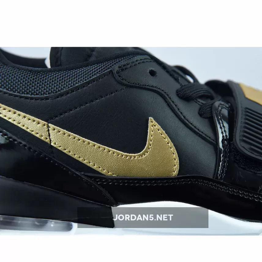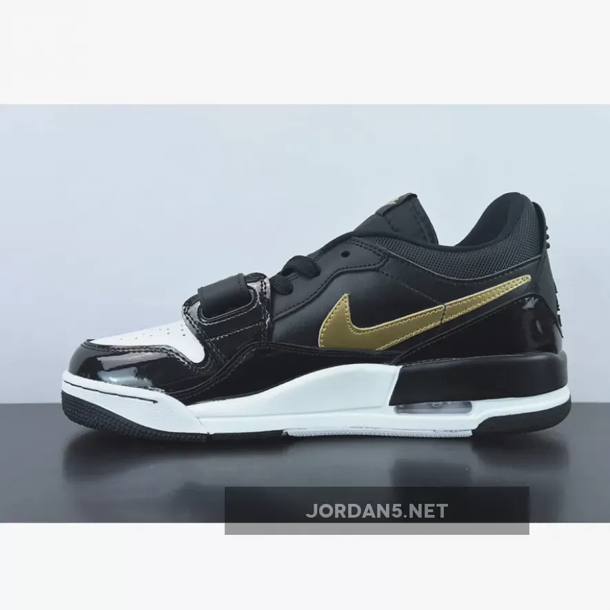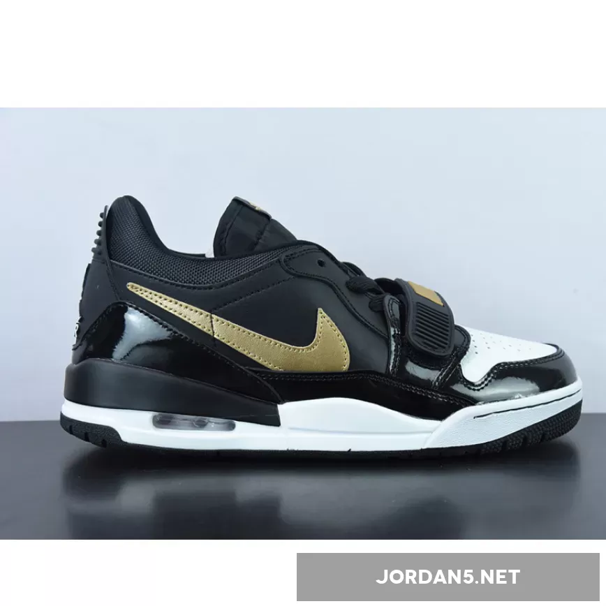 The Jordan Legacy 312 Low Patent Black Gold has all the elements sneakerheads love in a sleek sneaker. It has a dynamic design and a versatile colourway that’s anything but garden-variety. This particular pair comes with a mixed upper: smooth white leather for the perforated toe, black patent leather for the mudguard, grainy leather for the side panels and black mesh for the collar.