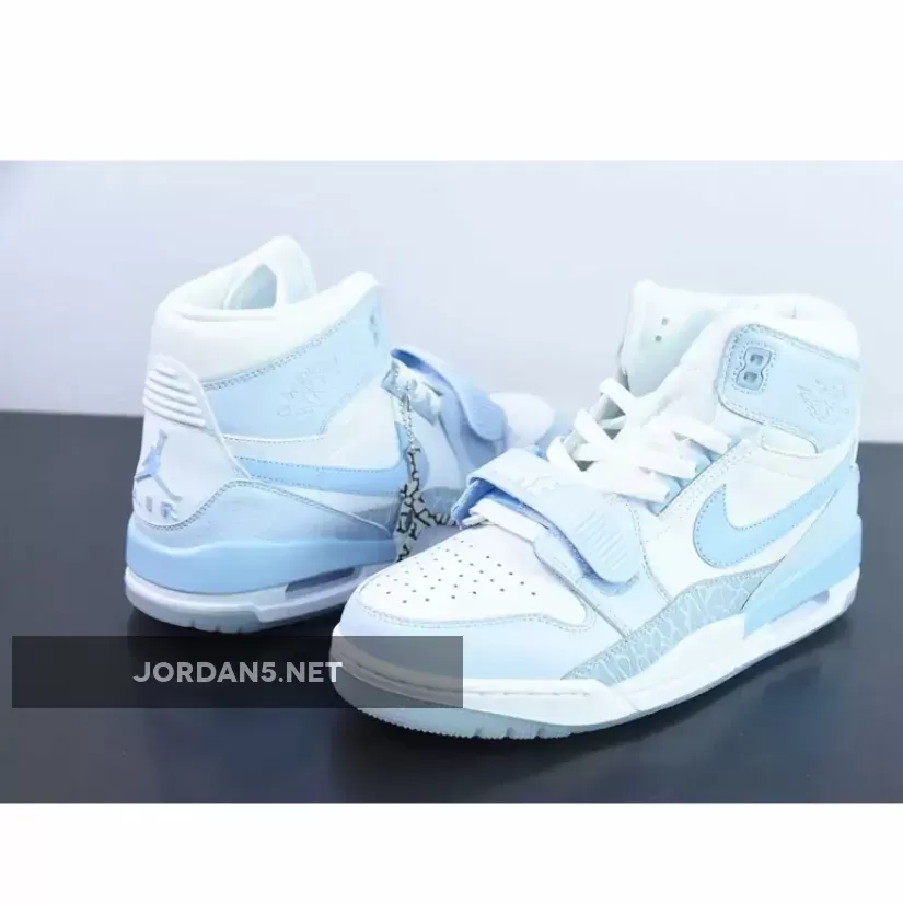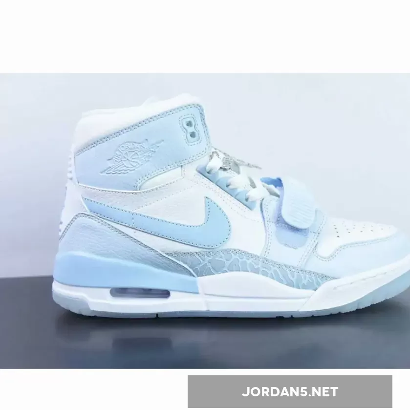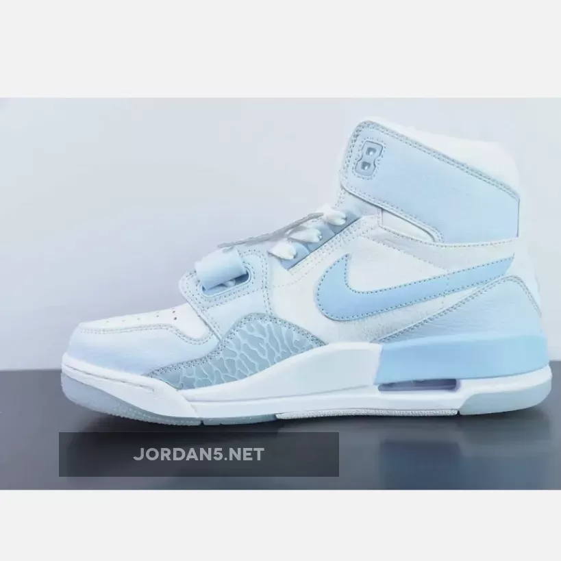The Jordan Legacy 312 “Arctic Blue” sneakers stand out with their unique combination of materials and colors. The upper is crafted from quality leather, providing a durable and stylish base. Donning a “colorless” base and light blue contrast around the forefoot, along the tongue, and across the heel.