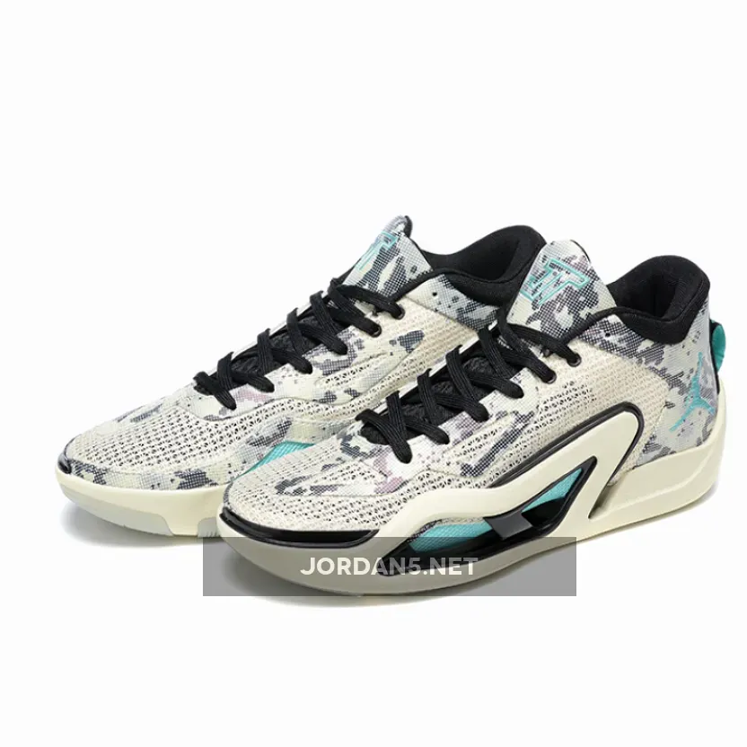 A lightweight mesh upper, a hallmark of the Jordan Tatum 1, then ensures comfort and breathability. Adding to its allure are the baby blue hits on the exposed knit along the profile and branding details near the heel, providing a dash of color against the neutral palette. Rounding out the design is the white midsole and outsole.