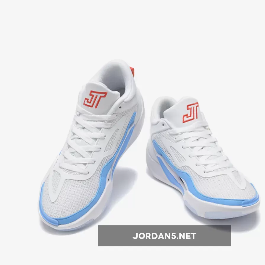 we can see the Jordan Tatum 1 “St. Louis” boasts a “White,” “University Red,” “University Blue,” and “University Gold” color scheme as a nod to his hometown Caridnals’ Powder Blue uniforms. It is constructed in a lightweight, white mesh upper, and also features padded collars for added ankle support. A TPU frame is also utilized and highlights the uncaged Zoom Air bag at the forefoot so that feel on the court is not sacrificed. Furthering the theme is the “Archer Ave” details on the inner tongue label. as well as additional branding on the heel tab.
