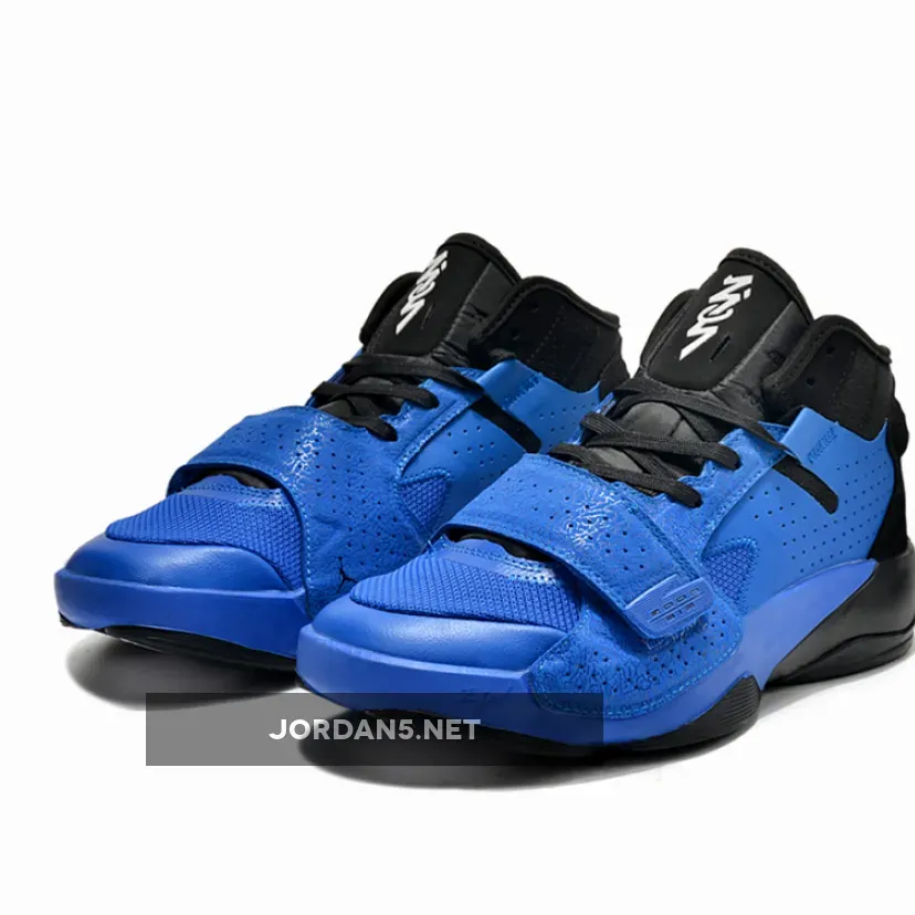 Dressed in a Hyper Royal, White, and Black color scheme. This offering of the Jordan Zion 2 comes constructed in a mix of textile materials with cracked elephant print on the quarter overlay and “Zoom Air” branded forefoot strap.