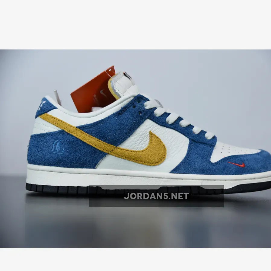 The Dunk Kasina references travel through Korea. The Industrial Blue colorway draws inspiration from ’80s Korean transport. It mirrors the look and feel of Seoul’s vintage buses, down to a unique hangtag that reimagines the steering wheel. The dark suede overlays remind of vintage buses in conjunction with the mustard yellow swooshes that sprawl along the profile in the same fabrication. White tumbled leathers then balance underneath, matched by the laces, tongue, lining, and midsole. Further special branding takes form on the tongue patch as its bold lettering phonetically spells out the Kasina namesake.