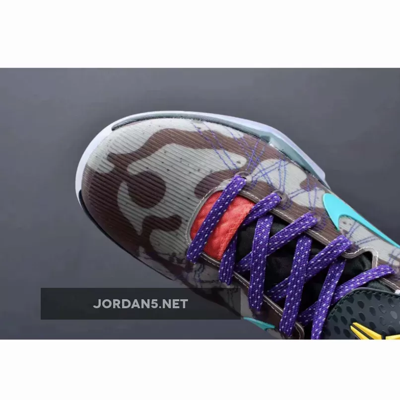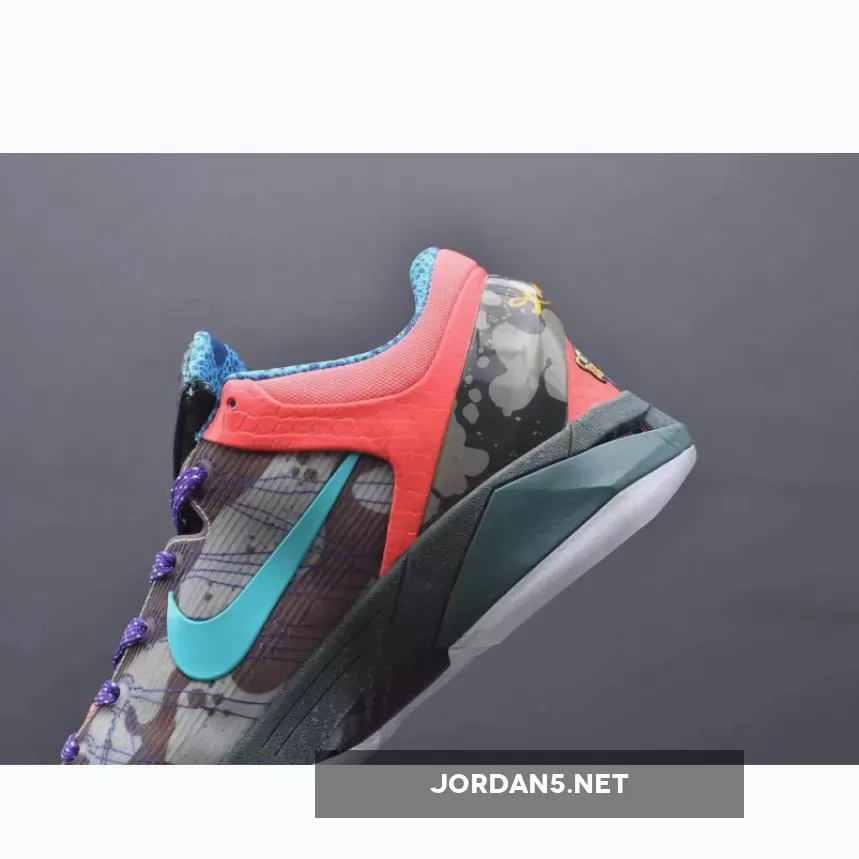 The Kobe 7 System comes with two interchangeable insert options allowing players to switch out the cushioning and ankle support to match their style of play. The ‘Attack Fast’ insert includes a Phylon midsole with Nike Zoom units in the forefoot and heel for lightweight responsiveness, and the ‘Attack Strong’ offers more protection and support with its full-length Cushlon midsole and padded ankle cuff. This ‘What The Kobe’ model, inspired by the mash-up concept first introduced by Nike SB in 2007, blends together several different Kobe 7 colorways including the Mamba Snake, Cheetah, Poison Dart Frog, and Shark. Other details include Kevlar Flywire technology and a carbon fiber external heel counter.