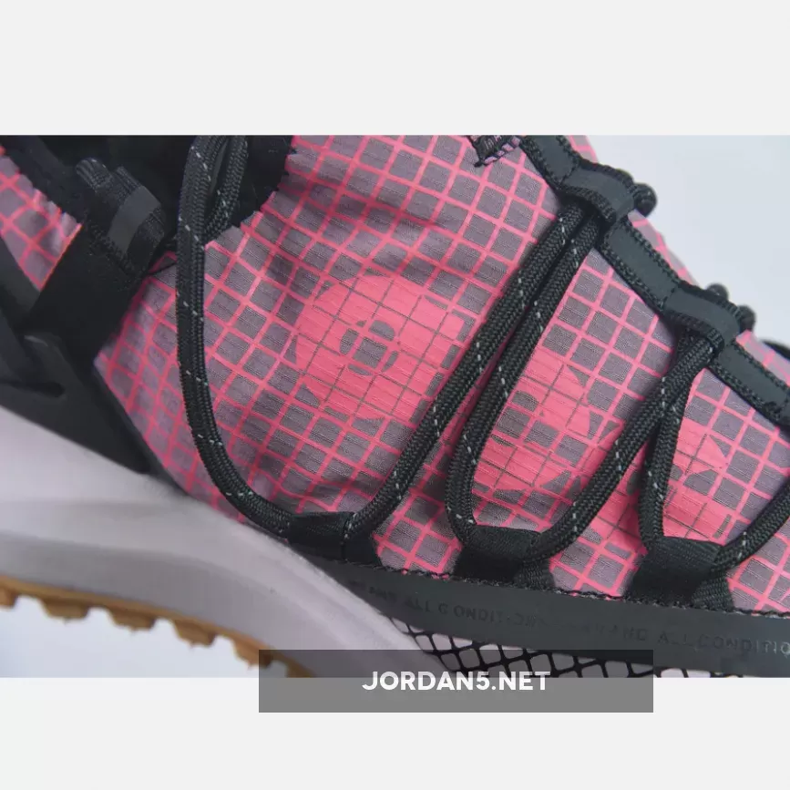 the pair’s construction is packed with utility, some not outwardly evident through official images. The sole’s tread pattern, for starters, is clearly made for the trail, featuring a waffle-reminiscent pattern that’s rendered fully in a gum finish. Above, the same mindset informs the upper’s construction, its durable ripstop material combining with a ghillie-esque lace system and water-resistant taping. The color scheme itself also fits the All Conditions Gear bill as the aforementioned dresses adjacent to hits of “Flash Crimson,” violet, and black/white neutrals.