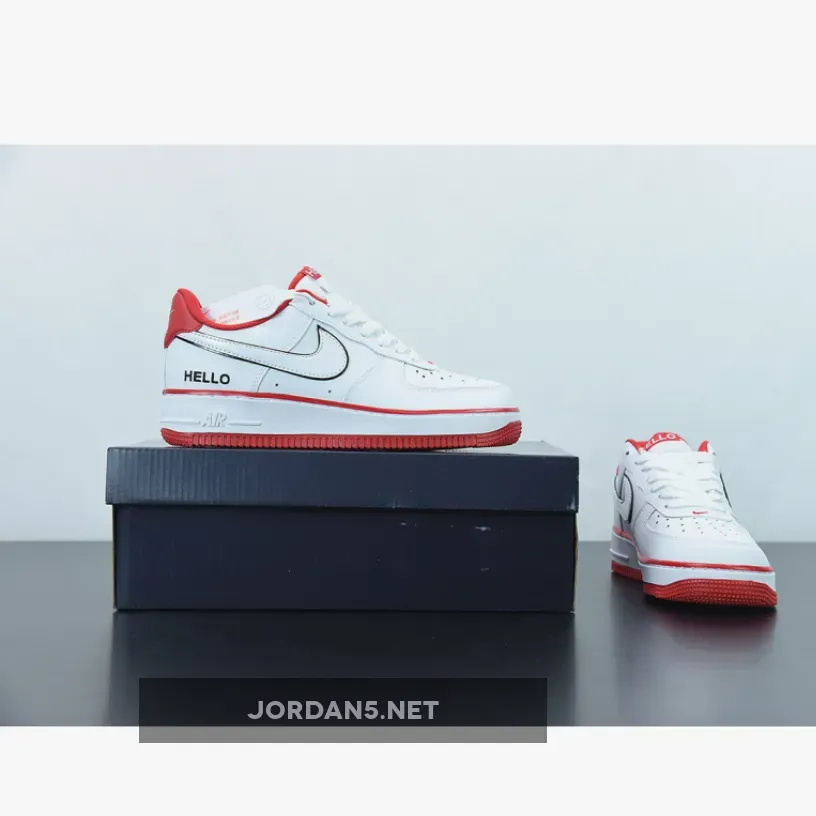 “I’m stoked with my Nike Air Force 1 ‘Hello’ White/University Red/Black! The premium leather upper looks fresh and the tumbled finish gives it a unique texture. I love the pop of color from the University Red accents and the red trim adds a nice touch. The black outlines on the Swoosh and ‘Hello’ text keep things clean. Overall, a great addition to my sneaker collection!”