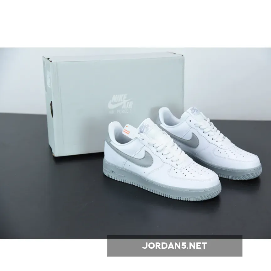 The legendary Air Force 1 07 returns with a minimalistic colour two-tone blocking for the daily rotation. Smooth leather dresses the uppers with “Wolf Grey” dressing the Swoosh, heel badge and midsole/outsole for a simplistic contrast. Classic Nike Air embroidered at the heel with perforations at the toe box. Padding at the collar keeps your foot snug and locked in. The foam midsole includes an encapsulated Air cushioning unit with a non-marking rubber outsole to provide the traction.