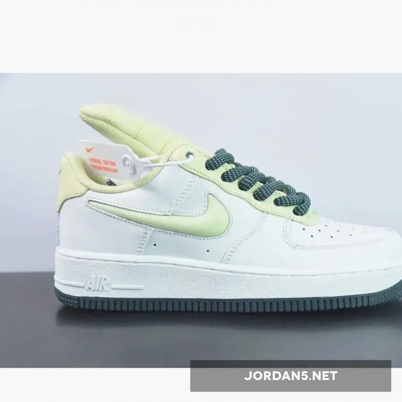 The palette on the “Big Tongue” Air Force 1 Low is as refreshing as a summer afternoon. Anchored by a clean white base, it lets its colors do the talking—quite literally. The rubber outsole and thick laces are awash in a refreshing green, setting the stage for the other standout hues. Then comes the lemon—a color that punctuates the elongated tongue, eyestay, heel overlays, and notably, the protruding jewel Swoosh which graces the profile side. What’s more, a lasting swatch of neon is painted along the heel’s embroidered logo while the laces’ dark teal tint returns to treat the tread in conclusion.