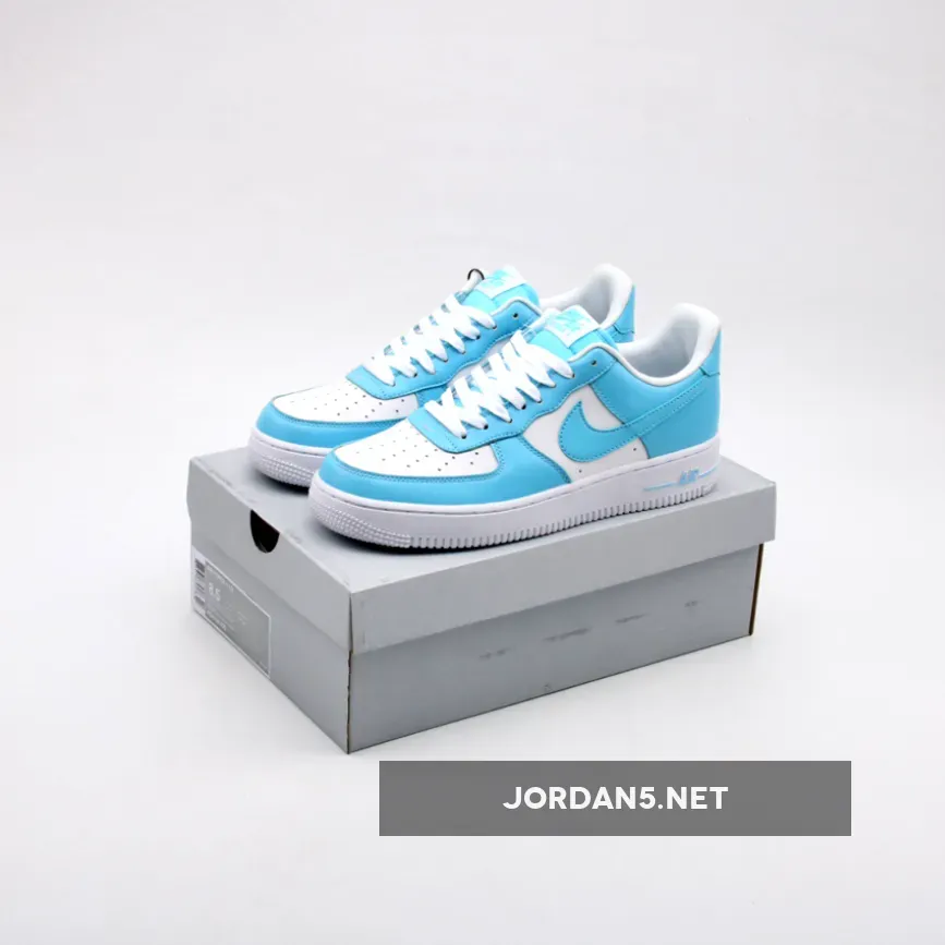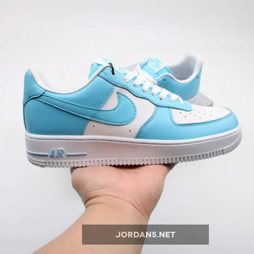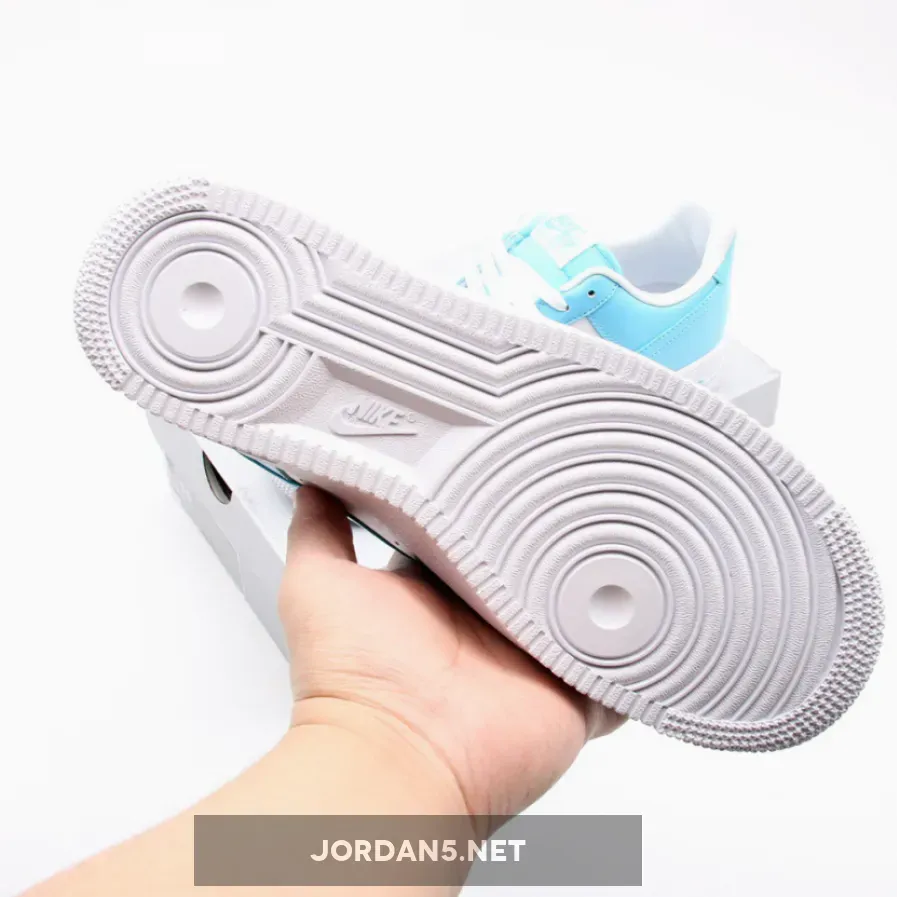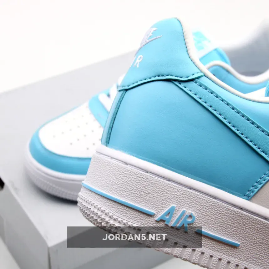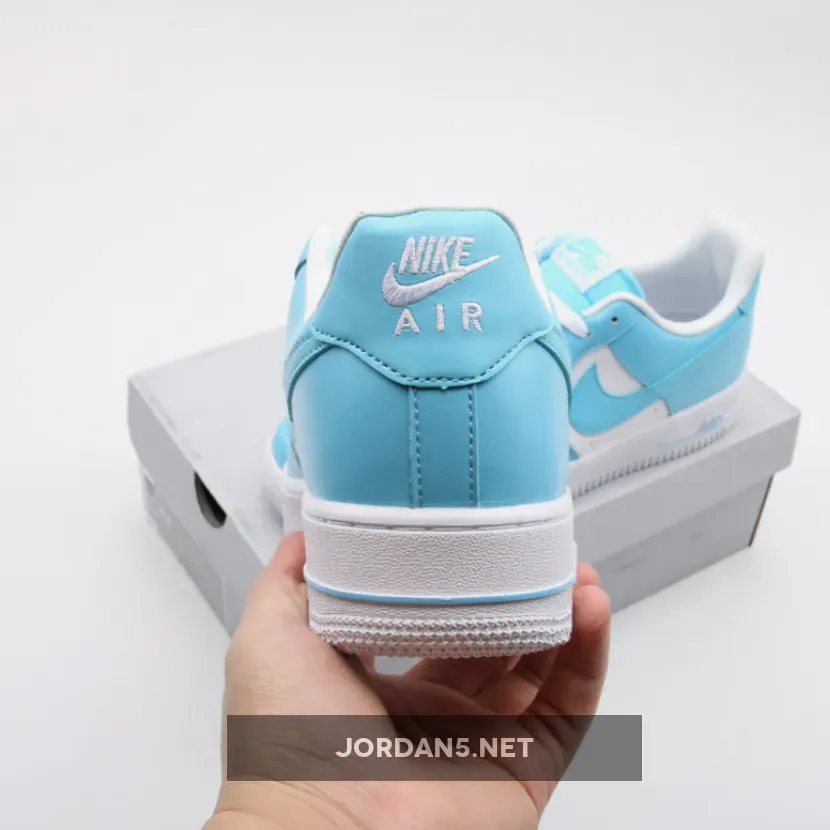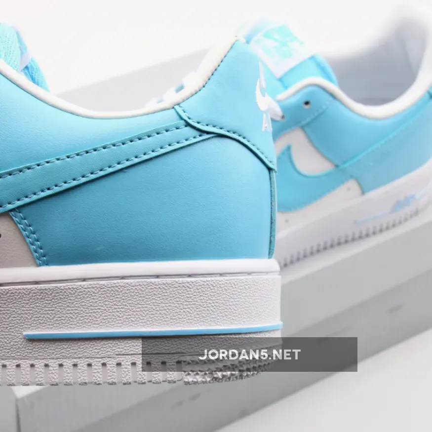 This Nike Air Force 1 Low comes dressed in a Blue Gale and White color scheme. It features a full leather upper with perforated detailing on the toes and sides. A signature AF rubber sole completes the design.