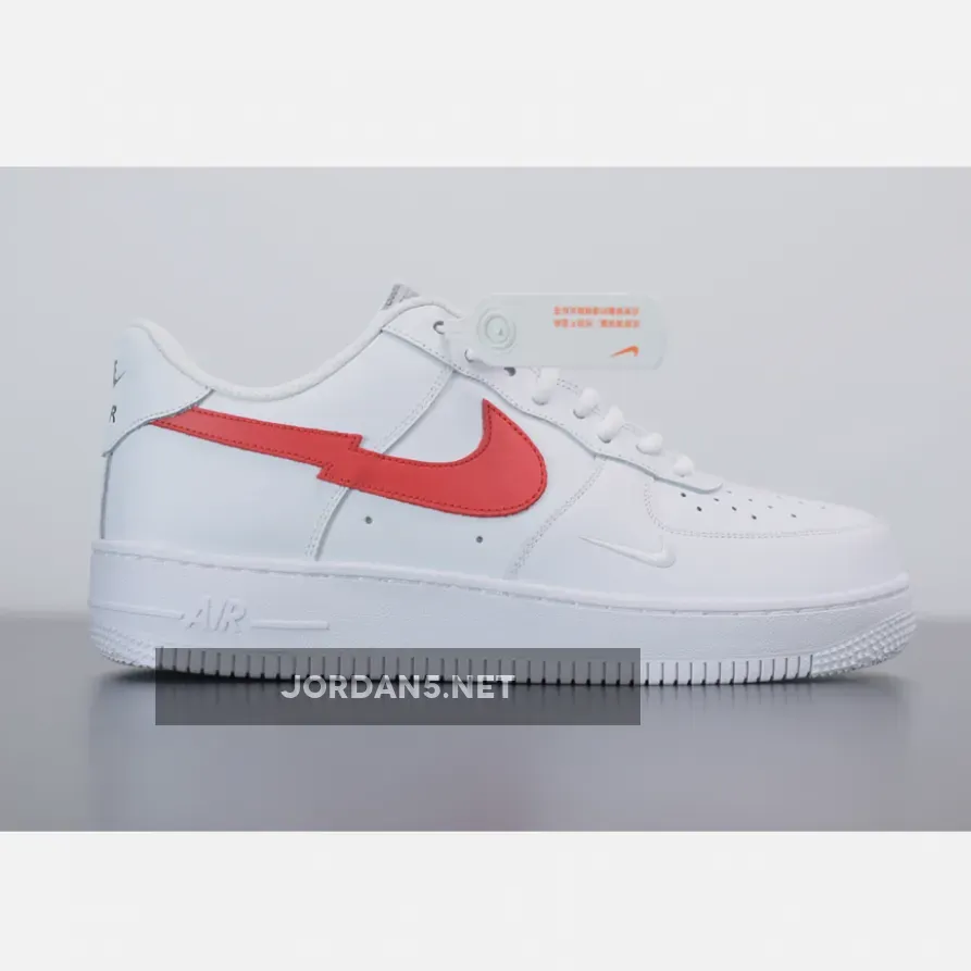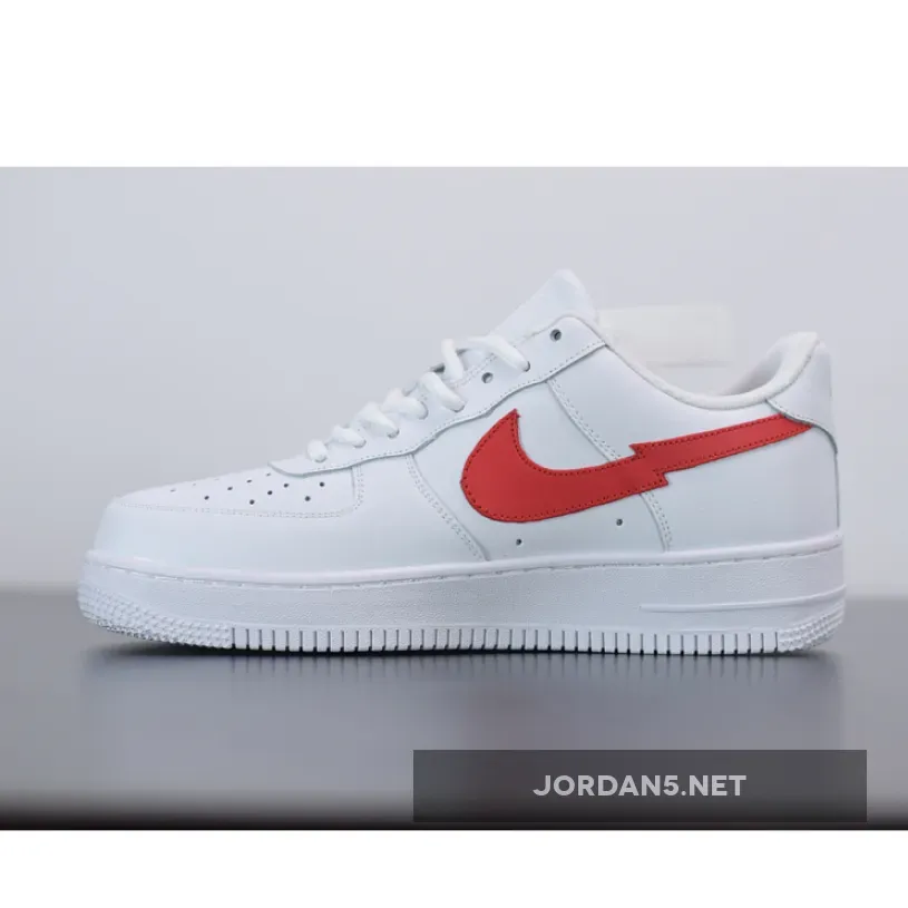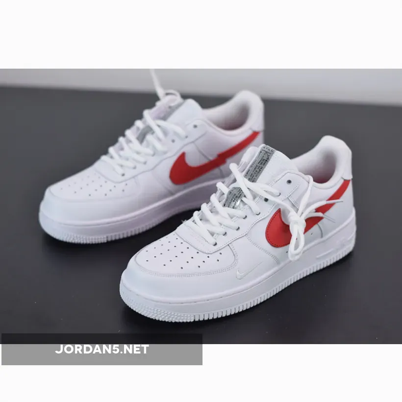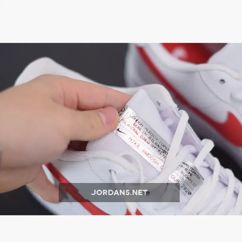 Effectively shifted by a small angle, the logo is likened to lightning bolts — a signature in the aforementioned genre — and dyed entirely red. Elsewhere, the leathers set the tone with white shading, only a small, equally understated miniature check adding further detail. At the heel tab, the pair applies the typical “Nike Air” in navy while the tongue opts for something much louder as it uses the same concert motifs against a backdrop of metallic silver.