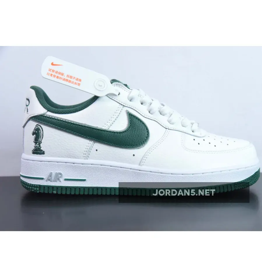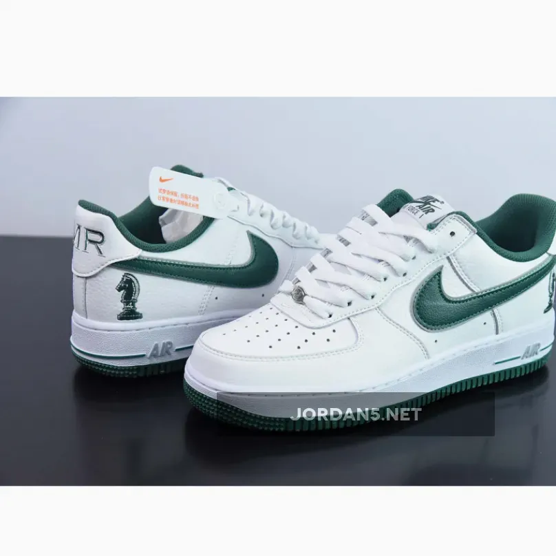 Unlike most Air Force 1s with a smooth-leather upper, these arrive with Swoosh logos fixed with a green tumbled leather textile, giving the low-top retros a premium look. Elsewhere, the chunky Air midsole unit underfoot is highlighted in a yellow shade for a pre-aged aesthetic. The award-winning feature of this iteration is the chess piece imprinted on the lateral heels, which is a nod to Lebron James’ business partners: Maverick Carter, Rich Paul, and Randy Mims, together making up The Four Horsemen. As for the rest of the counterparts, like the interior lining, outsole, Nike tongue branding, continues the white-and-green arrangement.