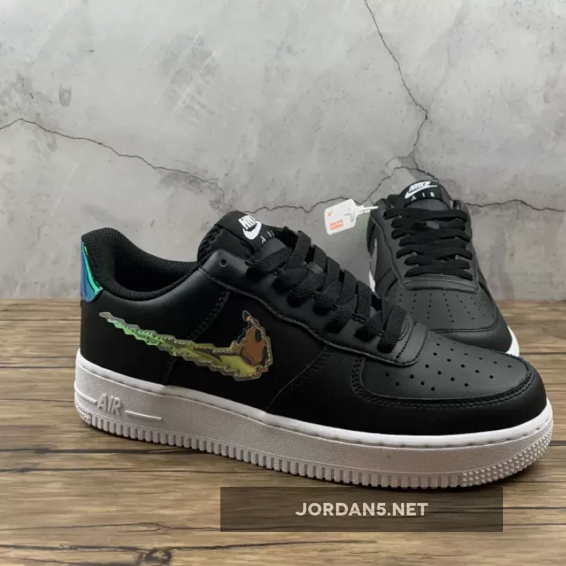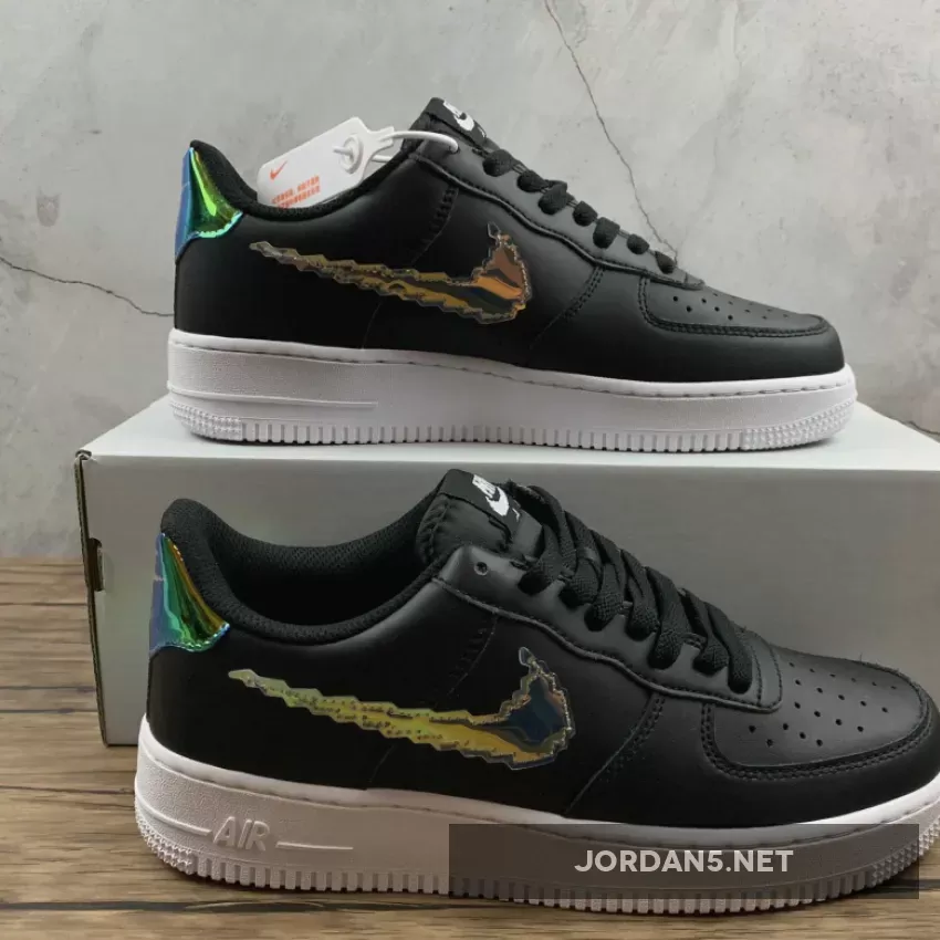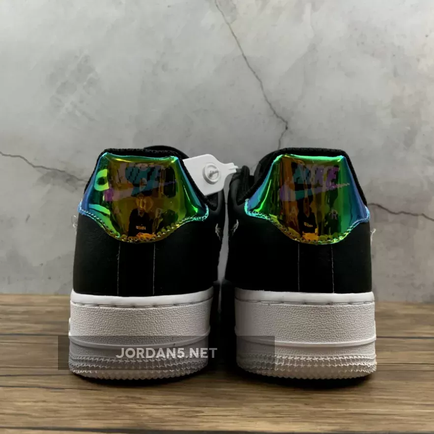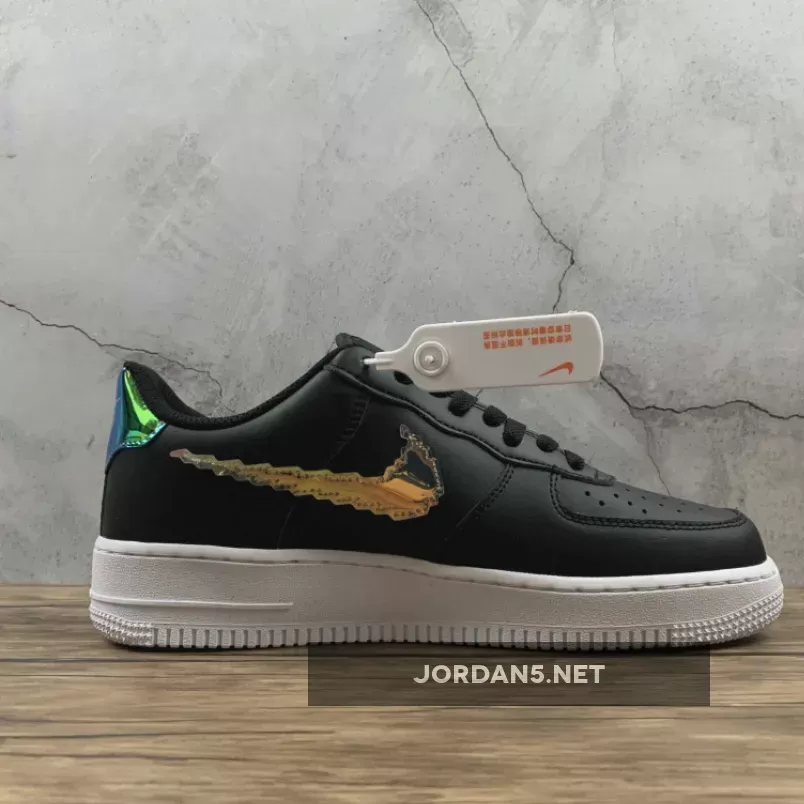 This offering of the Nike Air Force 1 comes dressed in a Black, Multi-Color, and White color blocking with some added eye-catching details. It features a Black leather upper highlighted with iridescent pixel Swooshes, tongues and heels as well as pixel branding on the insoles. A solid White rubber sole completes the design.