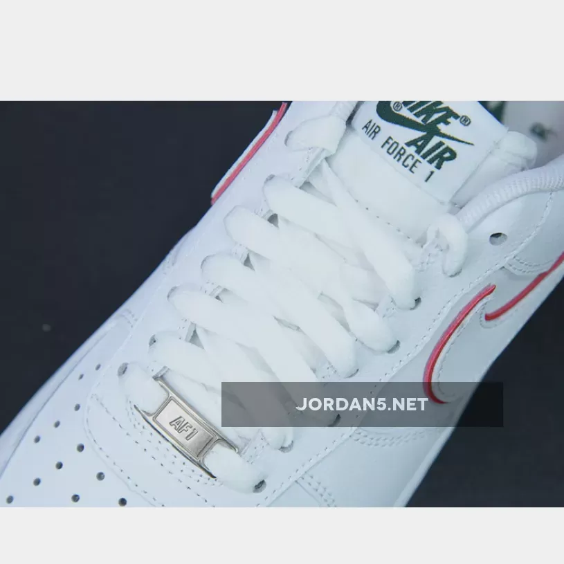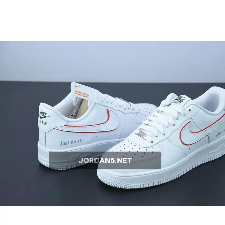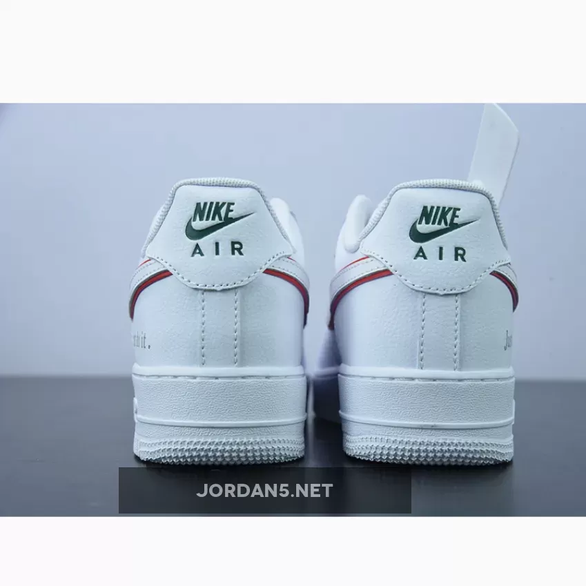 Clad in its signature white leather, the pair presents with other staple finishes like white nylon tongues, all-white sole units, and pure white liners. It’s jazzed-up by the titular slogan emblazoned on the lateral heel, as well as dual-layered red and white Swooshes, and deep green branding hits at the tongue, insole, and heel. The design is then completed by a special iridescent AF-1 branded dubrae.