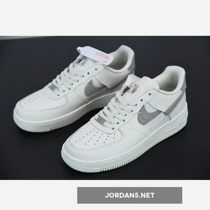 this pair opts for tan python print details that are much more wearable. To expand the neutral color palette, the base of the model indulges in a soft tan color rather than a stark white. The soft buffs help balance out an already bold model that features a split swoosh and exposed stitching.