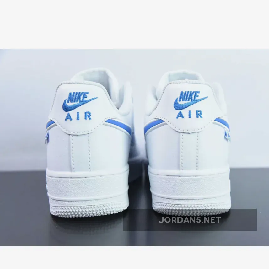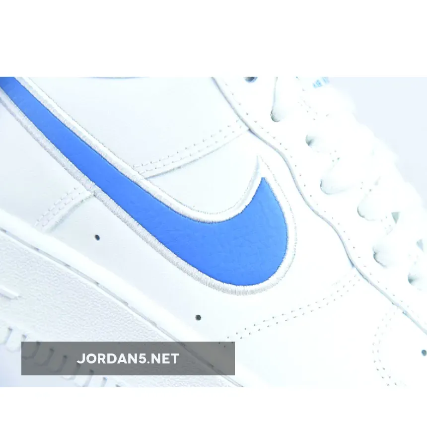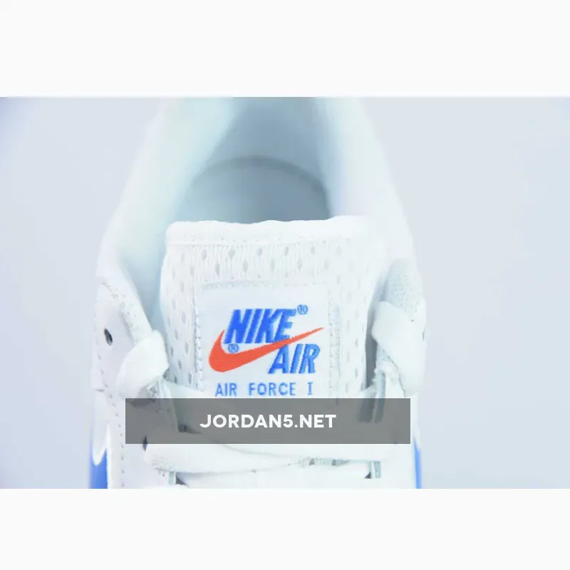 Going over this Nike Air Force 1 Low, it features White smooth leather on the upper, eyestays, and heels. Next, we have jersey mesh on the tongues, a nod to when the shoes were used on basketball courts. Color-matching the cerulean blue hue throughout the heel and vamps branded embellishments, an “AF-1” hangtag is added to further entrench the model’s athletic roots while a seldom orange shade attributes the tongue tab’s Swoosh in conclusion.