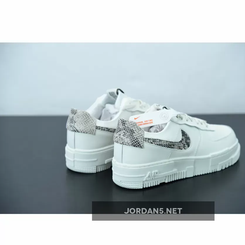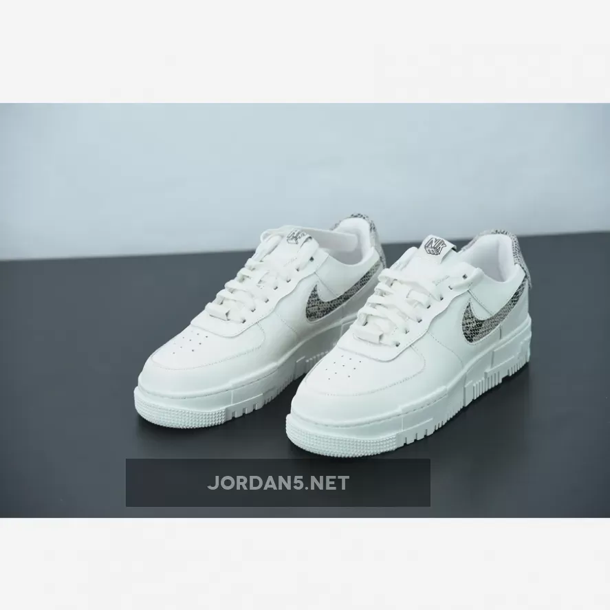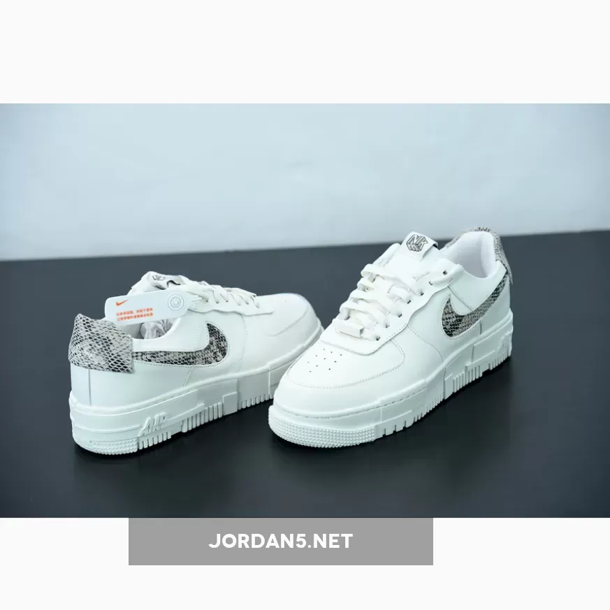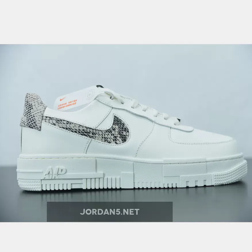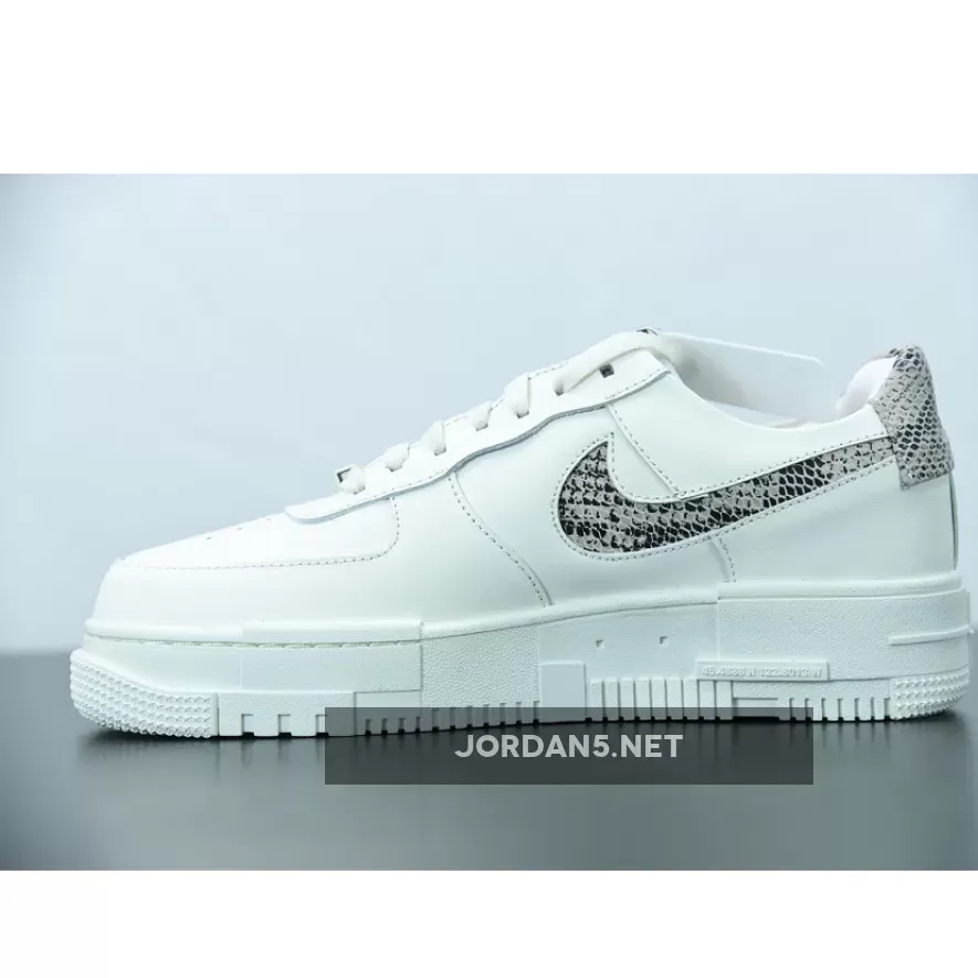 Smooth leather, pixelated midsole & faux snakeskin Swoosh make these AF1 Pixel SE Snakeskin Sail Desert Sand kicks a fresh daily pair. #NikeAF1 #PixelSneakers #SnakeskinStyle
