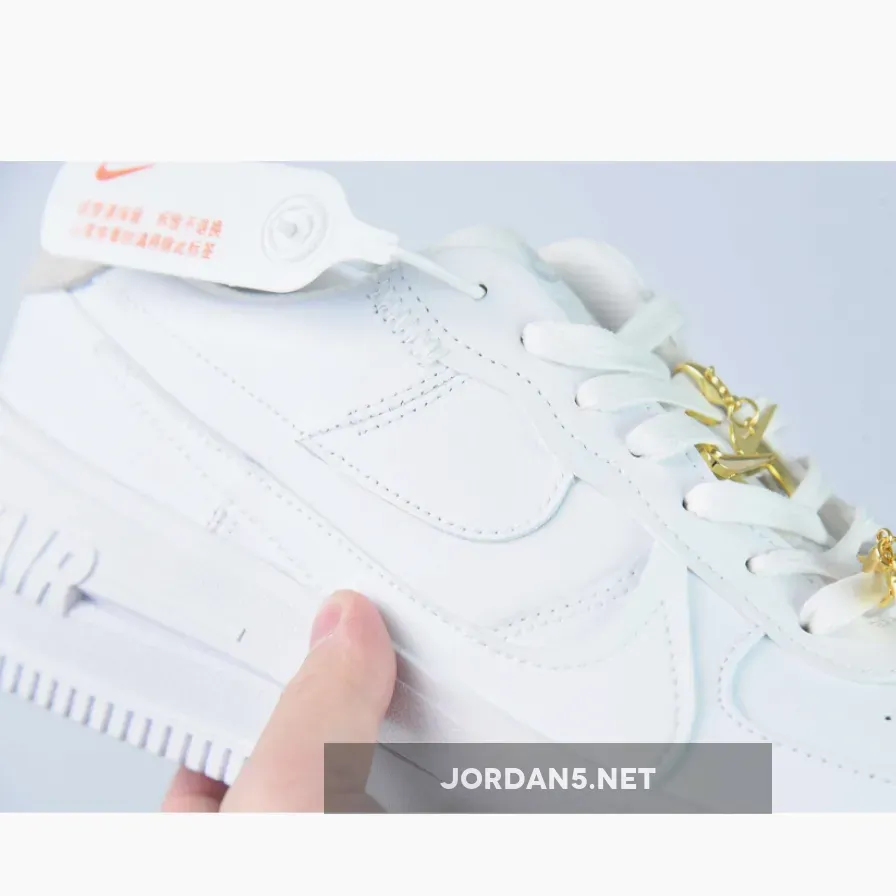 Remaining disparate from its previous build affixed with a jeweled dubrae, crisp white tumbled leathers enact a clad colorless composition throughout, color-matched along its nubuck tongue construction, laces and mesh tooling of the sock liner. Furthering the monochrome ensemble amidst its ridged sole unit, a slight Off-White tint lays claim to the midfoot Swooshes while an ever so light grey clothes the suede heel tab adorned with white embroidery. Attached throughout the lacing system, gold-branded charms anchor the suave outfit, finished in a cursive, mini Swoosh and circular check while matching golden leaf lettering denotes the pair’s anniversary year along the insoles in concluding fashion.