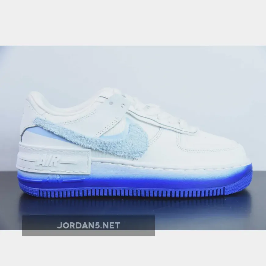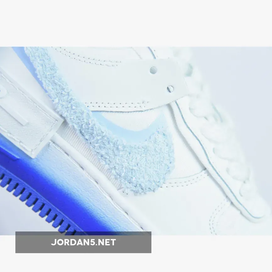 Consistent with others from the collection, the Shadow AF-1 rocks a clean white canvas upper, pastel tints on the chenille Swoosh markings, and airbrushed finishes to the outsole;Infusing a touch of pastels along the duo of “Powder Blue” mid-foot Swooshes, the presiding Check enjoys a disparate chenille textile in tandem with the undone aesthetic of its laces.