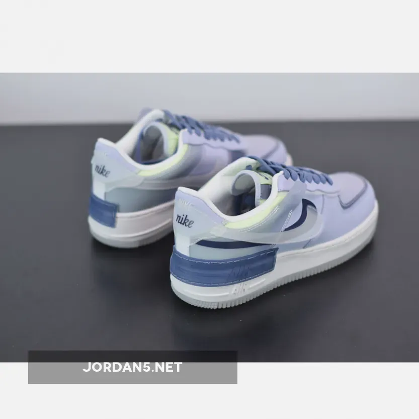 The upper on these is crafted from layered leather but unlike most other Shadow silhouette, the toe box doesn’t have any perforations. The heel boasts layered branding and, following suit, the Nike Swoosh at the side is also layered. Hits of neon yellow sit on the tongue but the rest of the sneaker comes in a mixture of blue and lilac. With a chunkier sole that your average AF1, the heel of this sneaker is fitted with Air cushioning that works to support your weight and deliver on stability.