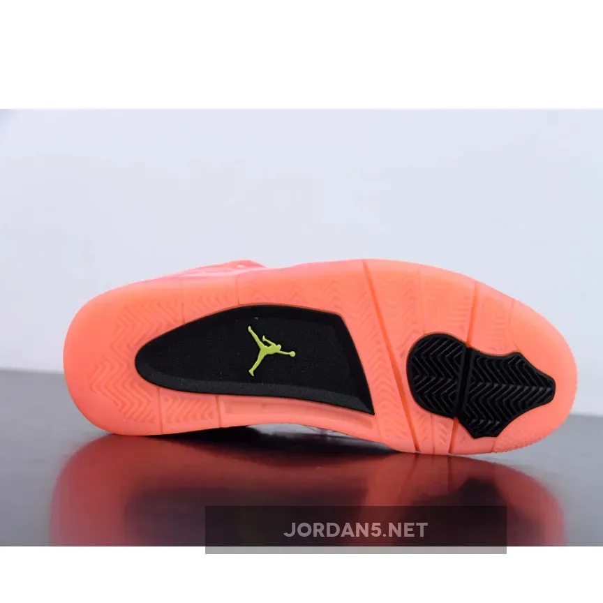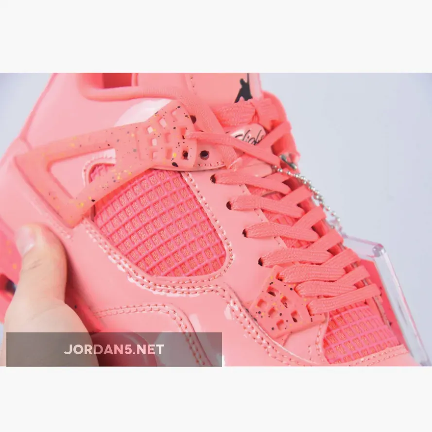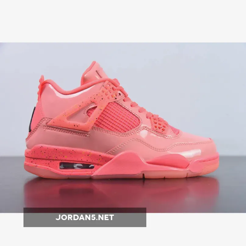Crafted in a patent leather, this Air Jordan 4 silhouette sees a neon bubble-gum colorway throughout the heel tab, lacing system, and upper.