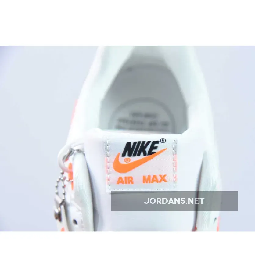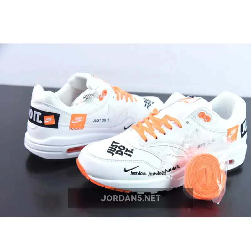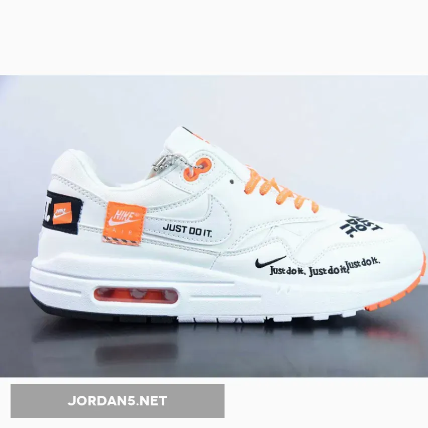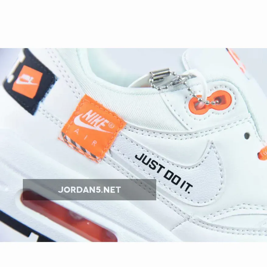 “Love these Air Max 1’s! Unique orange accents pop against clean white background. Comfortable fit, soft premium leather. ‘Just Do It’ motif adds thoughtful touch. Would recommend to any sneaker enthusiast!”