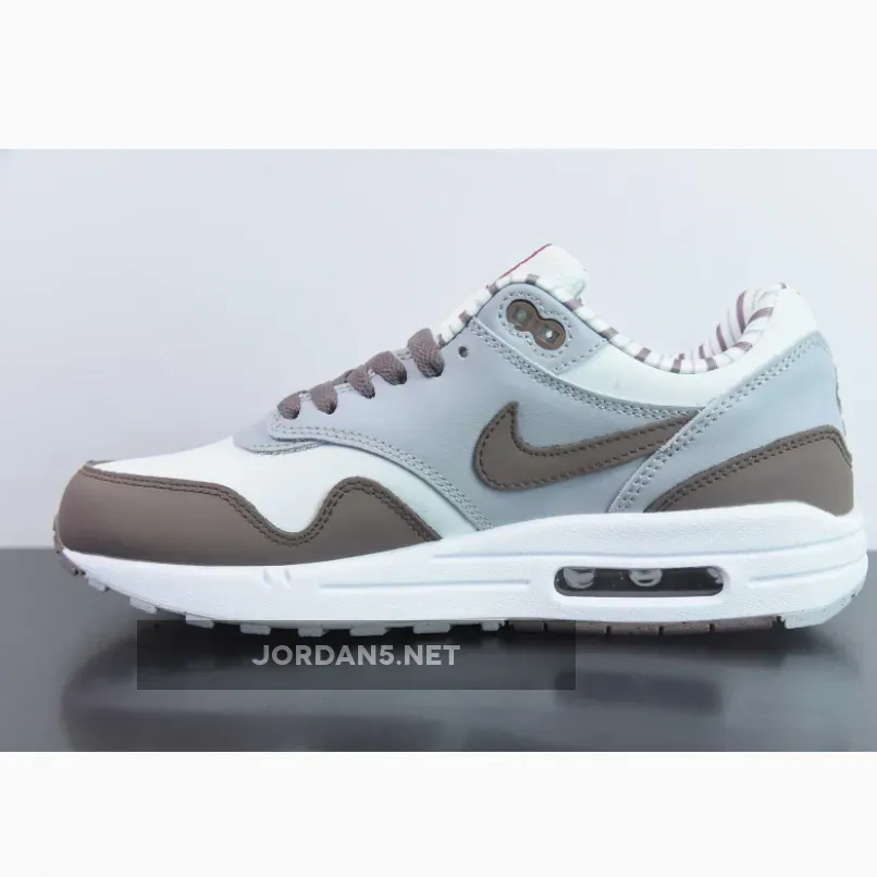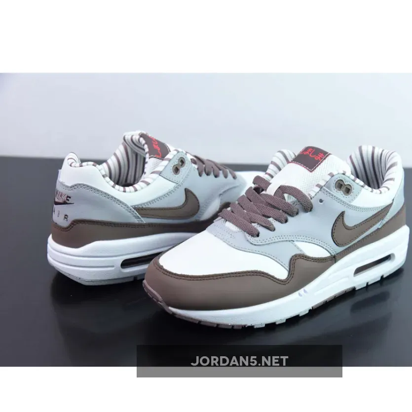 Now dressed in “Plum Eclipse”, this Air Max 1 comes dressed with the signature pinstriped interior lining with the Japanese messaging on the tongue. The upper – a leather/suede blend common in cherished AM1 releases – sees a clean white and light grey at the quarter and heel, with the brownish shade returning on the Swoosh and laces.