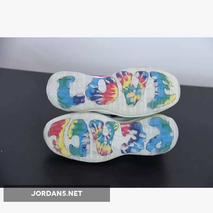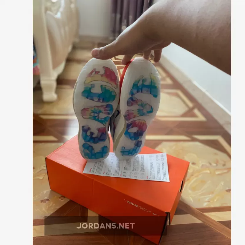 Against its natural white background, you’ll find the multi-colored groovy patterns flooding onto the mudguards and just between each of its wavy overlays. The theme continues onto the translucent outsole which is adorned with more tie dye, only in a way that spells out “LOVE” in all caps. On the interior, the footbeds, are swathed with a vibrant green hue, and stamped with Nike Golf branding remixed with hippie-style font