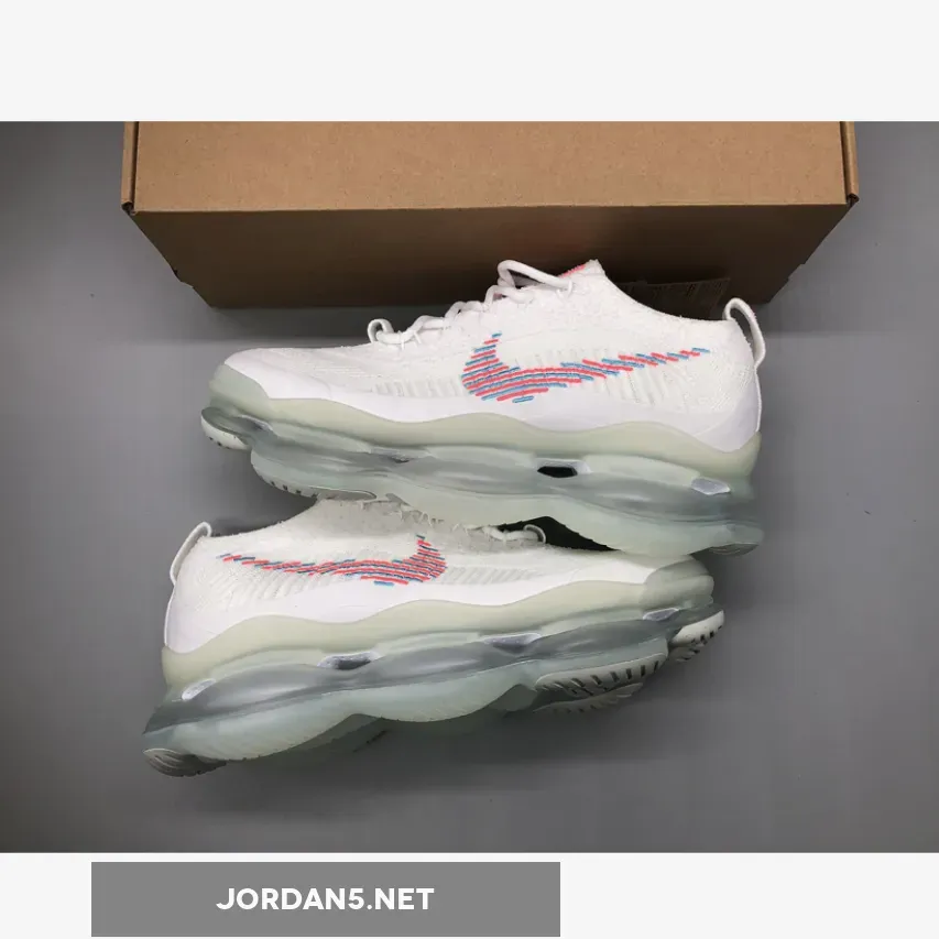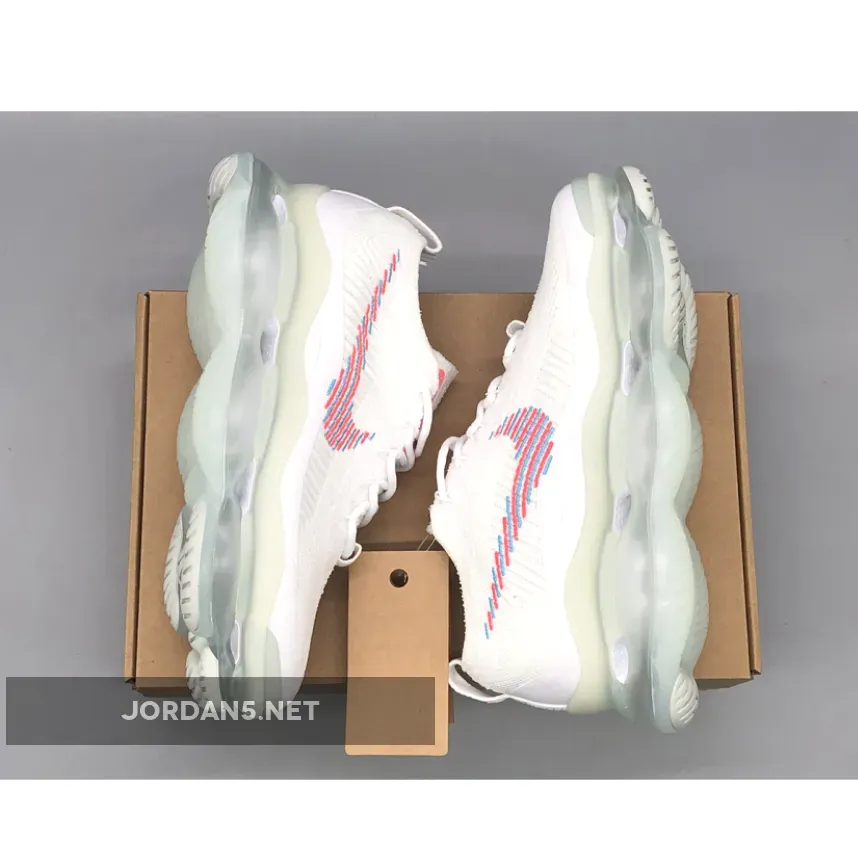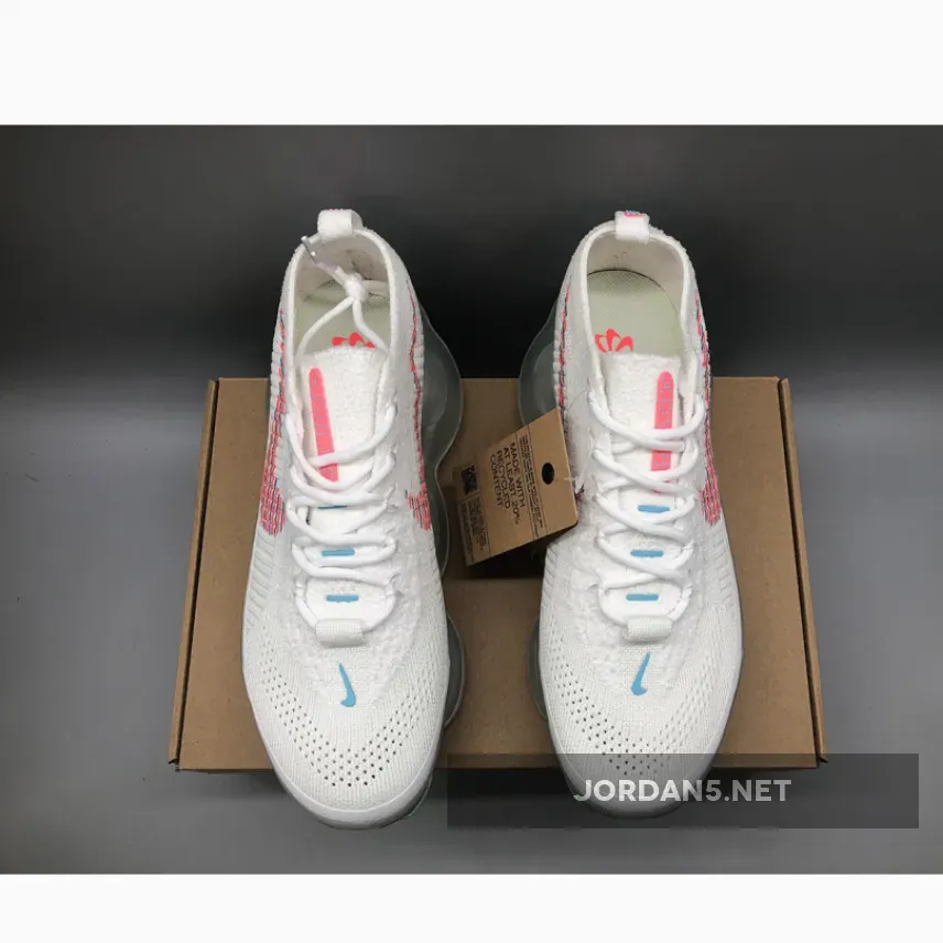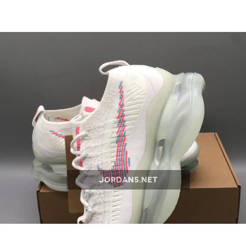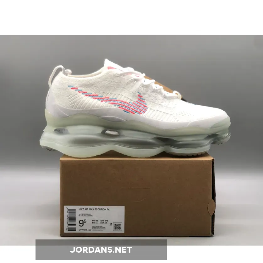 This Nike Air Max Scorpion comes dressed in a White, Lagoon Pulse, and Hot Punch color combination. A singular tone stretches atop the Flyknit and chenille construction of the upper with crisp white hues further enveloping the laces, pull tabs and color-matched full-length TPU mudguard.