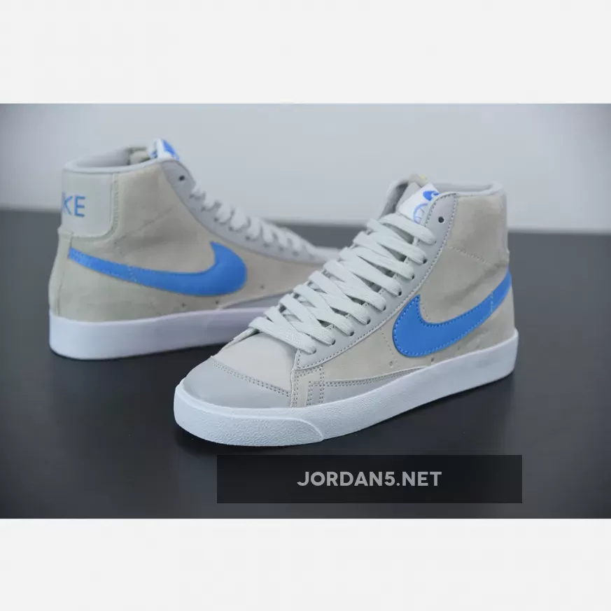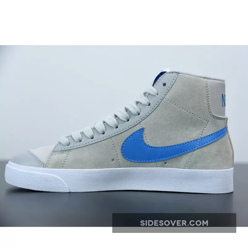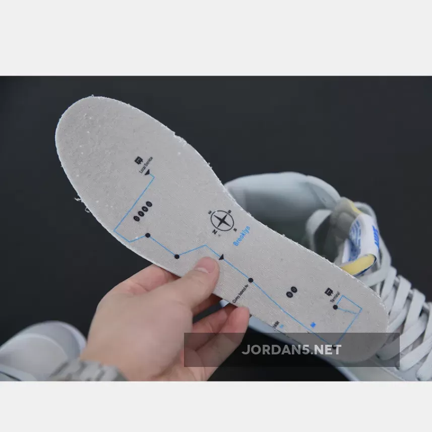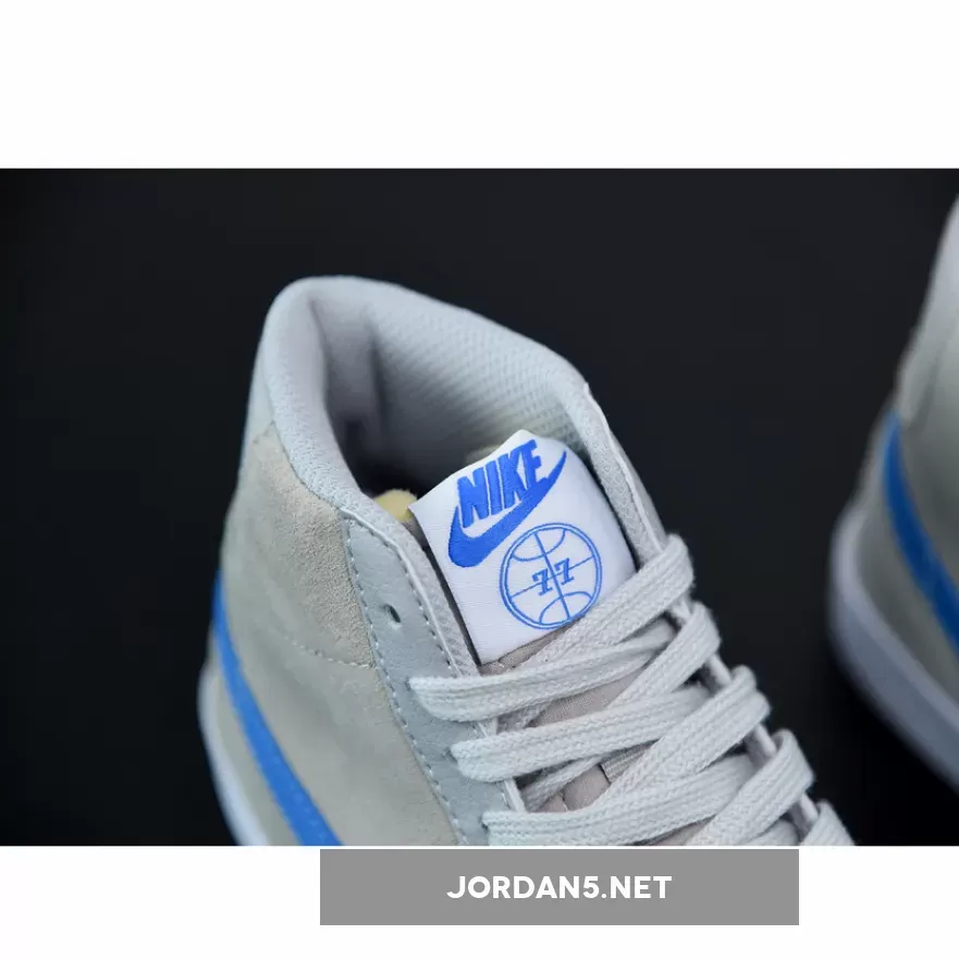 Constructed with suede, leather, and canvas, uppers on the mid-height Blazer boast a “Grey Fog” arrangement complemented with “Light Photo Blue” accents. Overlays along the lateral forefoot, toe, and tongue indulge in a lighter shade of grey; laces follow suit. Branding on the tongue, which features a non-standard basketball graphic accompanied by “77” text, sports a stark blue contrasting hue, just as profile Swooshes and “NIKE” logos on the heel. Akin to a recent Air Flight 89 inspired by Harlem’s Rucker Park, this made-for-hoops silhouette dons basketball-shaped lace dubraes. Sock-liners include Coney Island’s bus route printed in “Light Photo Blue”. Underfoot, the Blazer Mid-variant forgoes its upper’s palette in favor of a plain, but timeless all-“White” finish.