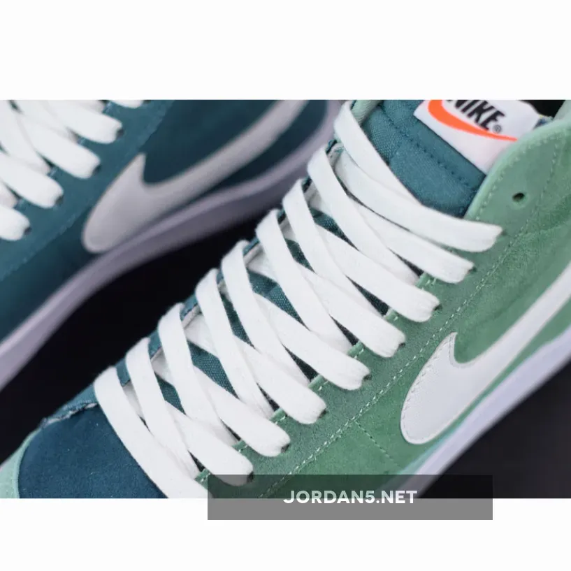 Dressed in a Healing Jade, White, and Ash Green color scheme. This Nike Blazer Mid features a suede constructed upper in a mix of light and dark tones of Green. Padded tongues, White leather Swoosh logos on the sides with matching laces and midsole completes the design.