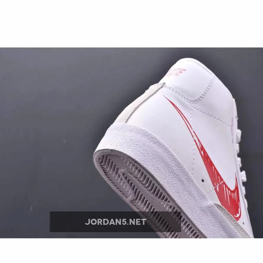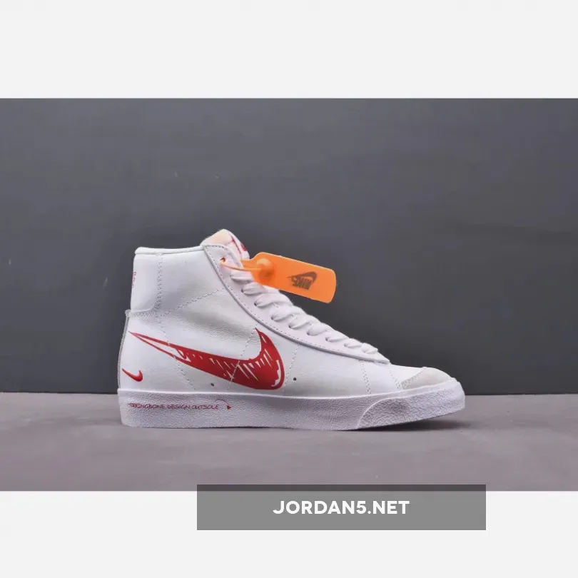 The Nike Blazer Mid ’77 Vintage “Red Sketch” is quite a demure option, being crafted from smooth white leather and beige overlays. However, eye-catching “Red Sketch” Swoosh insignia have been drawn onto both the lateral and medial walls. Elsewhere, Blazer-specific verbiage, such as “Nike Blazer Mid,” “Herringbone Design Outsole” and “1977” appear throughout.