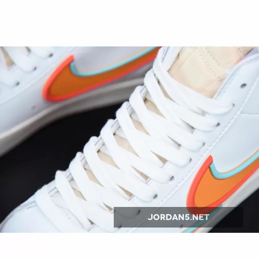 Dressed in a White, Bright Crimson, and Blue Void colors scheme. This Nike Blazer Mid features a White leather base with Teal, Crimson, and Blue overlays and synthetic material used on the bold Swooshes, up front and heels. D/MS/X branding underneath the padded tongues atop a solid White rubber sole completes the design.