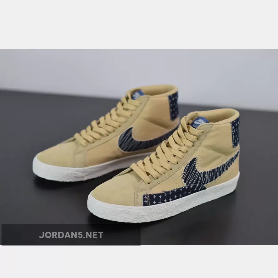 Sashiko, which literally translates to “little stabs,” is a form of decorative reinforcement stitching that originated in Japan around 400 years ago. This offering of the Nike SB Blazer Mid features a Sesame base with Sail DIY-style paneling covered in Sashiko-style stitching. A White midsole atop a Gum rubber outsole completes the design.