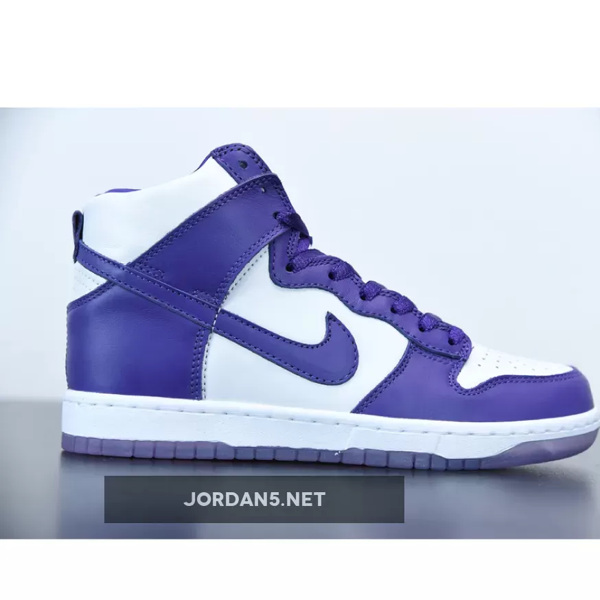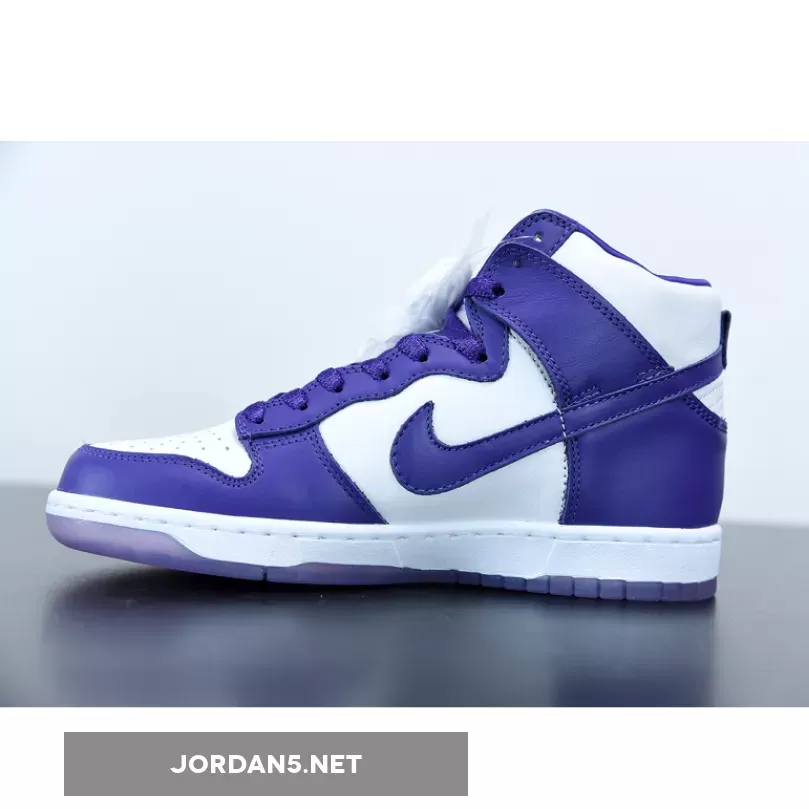 The Nike Dunk High Varsity Purple offers a classic colorway with a modern twist. The combination of white leather base and purple overlays looks sleek and stylish. The translucent purple outsole adds a unique touch that makes these sneakers stand out. Overall, a well-designed and stylish pair of sneakers that won’t disappoint.