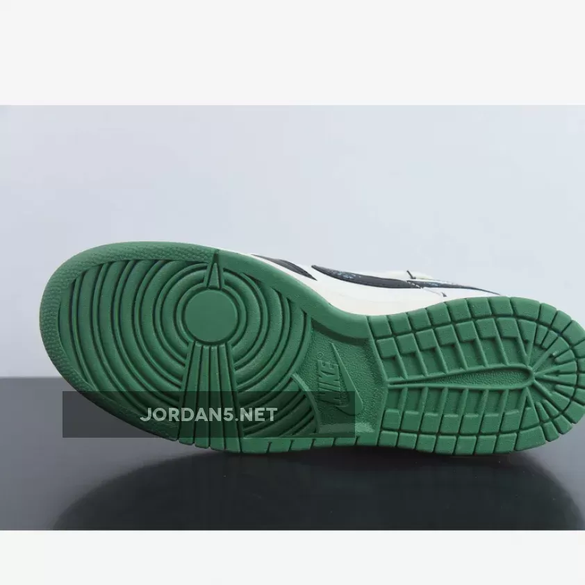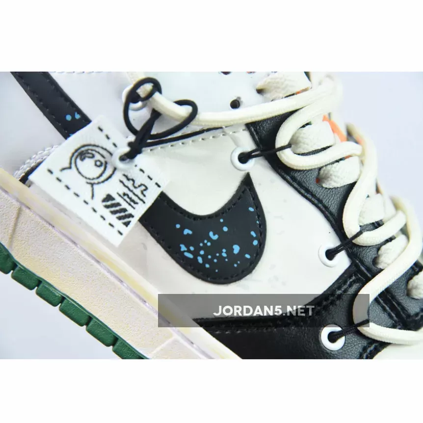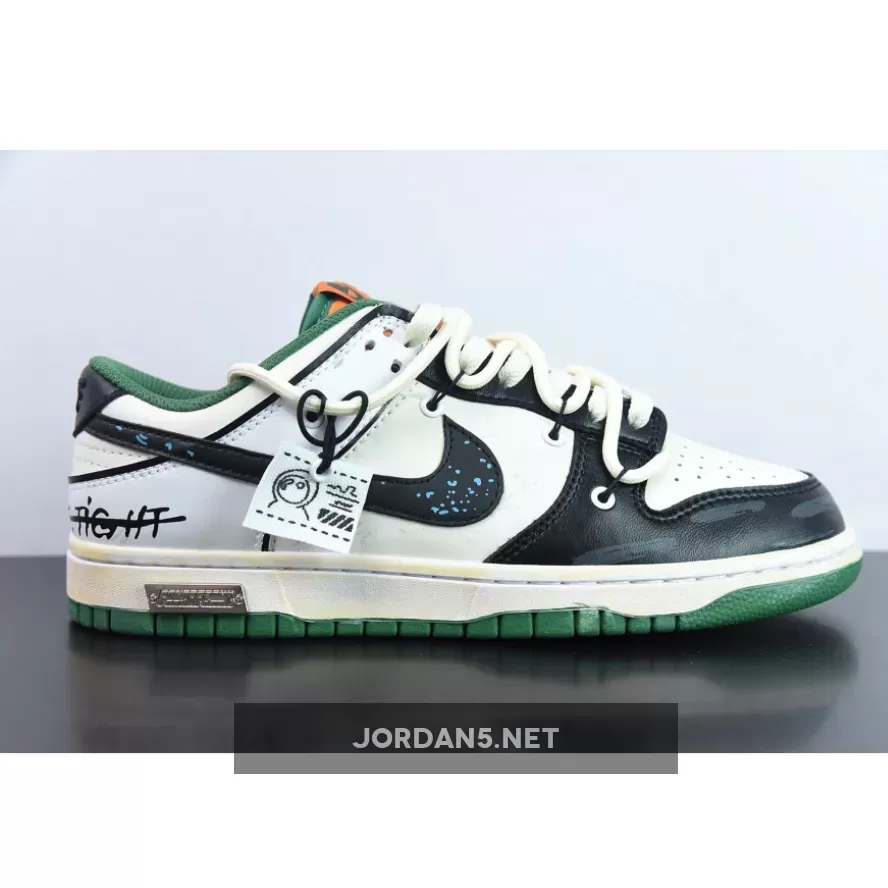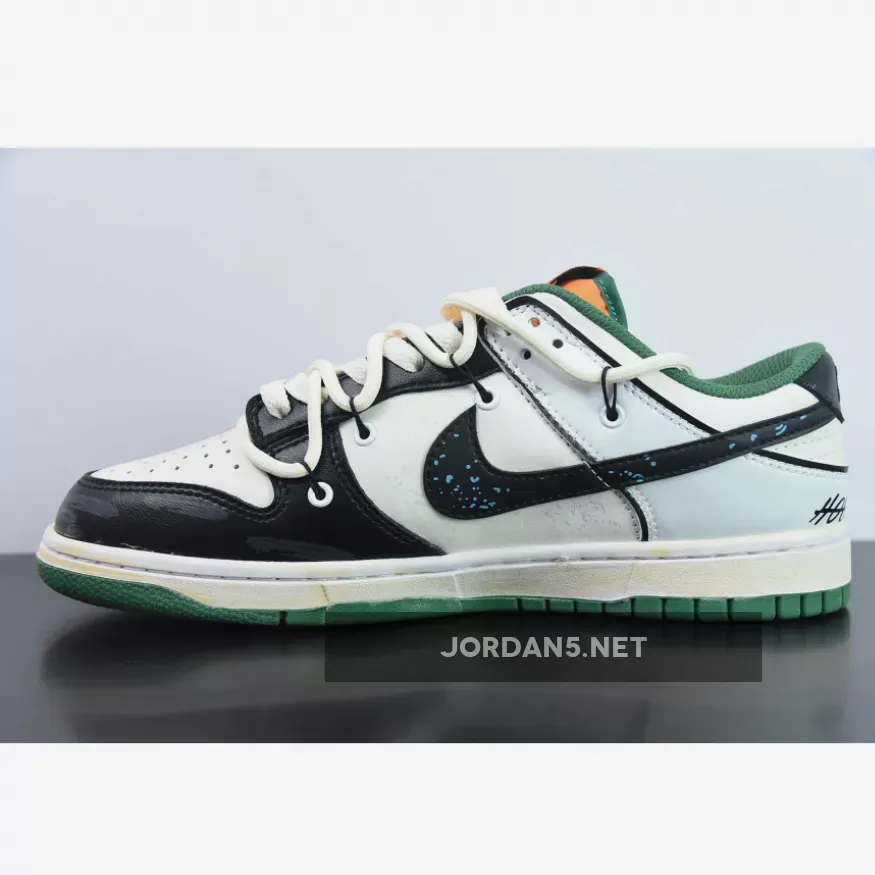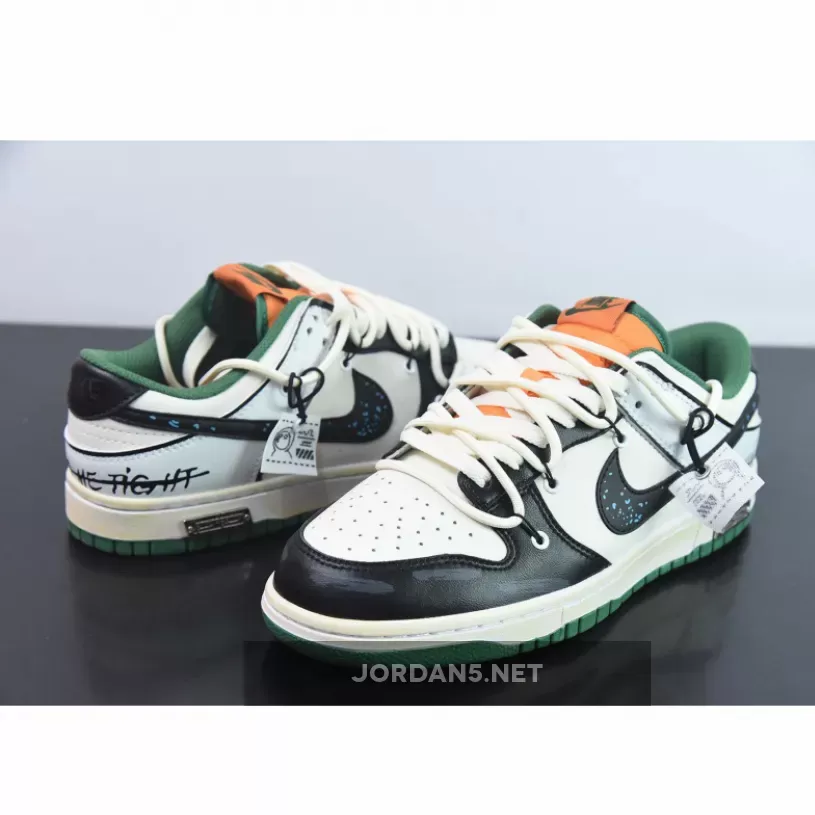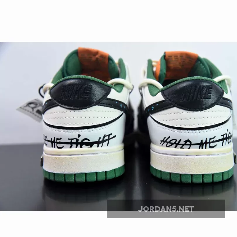 Upgrade your wardrobe with Nike Dunk Low Custom ‘Hold Me Tight’ White Black Green Orange from JORDAN5.NET.