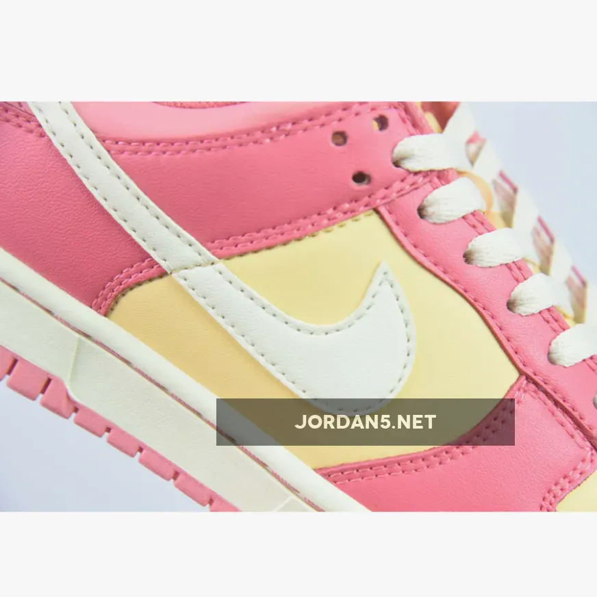 Equipped with a full leather construction on the upper, this Nike Dunk Low gets hit with a pastel orange hue on the side panels, toes, and mesh tongues. Strawberry effects are then added to the overlay system, tongue labels, and sockliner while cream tones are used on the Swoosh logos, lacing system, and rubber midsoles. A tonal shade comes in via the NIKE embroidery on the heel pad. A pink outsole completes the new design.