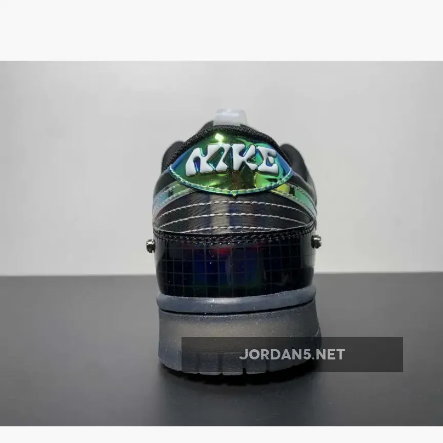 Nike is launching a second iteration of the Dunk Low “Hyperflat”, featuring darker, grey-scaled approach. The gridded pattern at the toe-guard captures that gun-metal hue, contrasted by the pitch black lace collar and heel — but off-set by a slightly oily finish. The Swoosh and heel tab, in particular, boast a reflective gloss that adds a touch of allure. The font choice blends nostalgia with a hint of retro-robotic aesthetics. Completing the overall look are the tongue pull-tabs, Phillips-head rivets, and a smoke-grey transparent outsole.