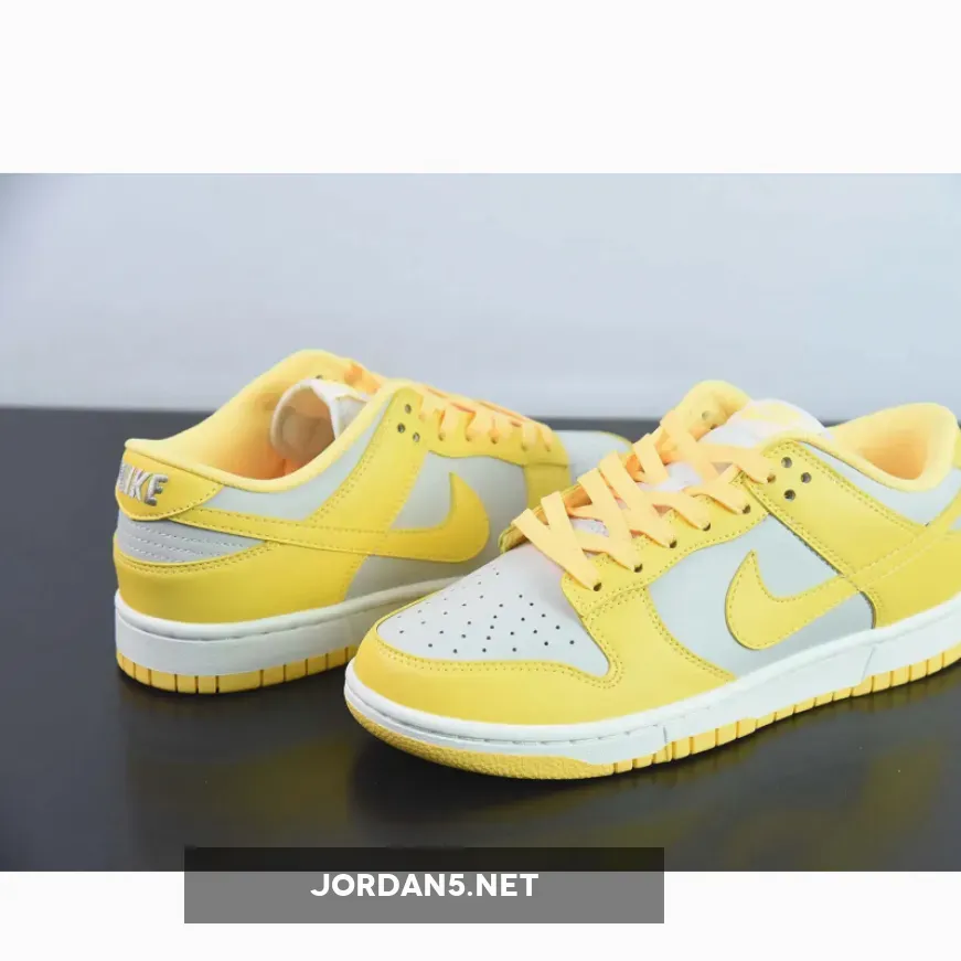 Covered in an official color scheme of Light Bone, Citron Pulse, and Sail, this Nike Dunk Low features a full leather build on the upper with a light grey seen on the base and the highlight Citron Pulse noted on the overlays, Swooshes, and inner liners. In complement, the midsole below features “Sail” through its sidewalls, while the overlays, laces, and outsole opt for the titular yellow.