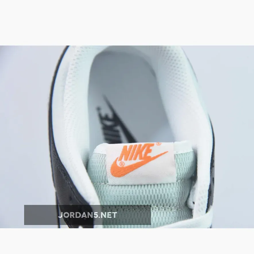 Grey mesh tongues sport a white lacing system while white is also used on the sockliners and the orange Nike branded tongue labels which of course match the embroidered mini swoosh logos on the toes.smooth Black leather appears on the overlays and tumbled leather Swoosh logos on the panels, giving the shoes the ‘Panda’ treatment.