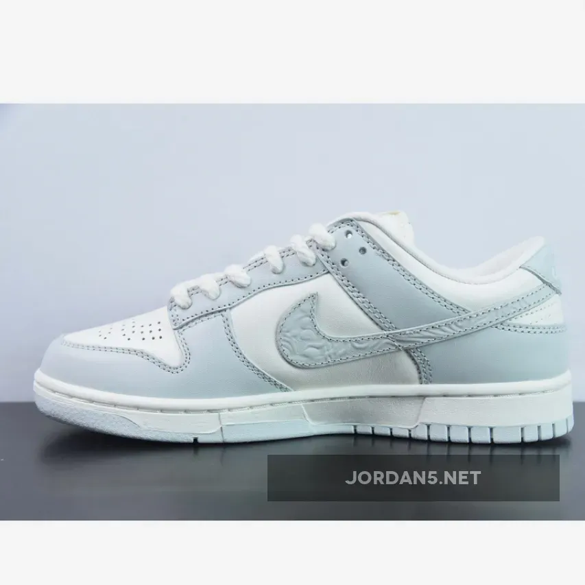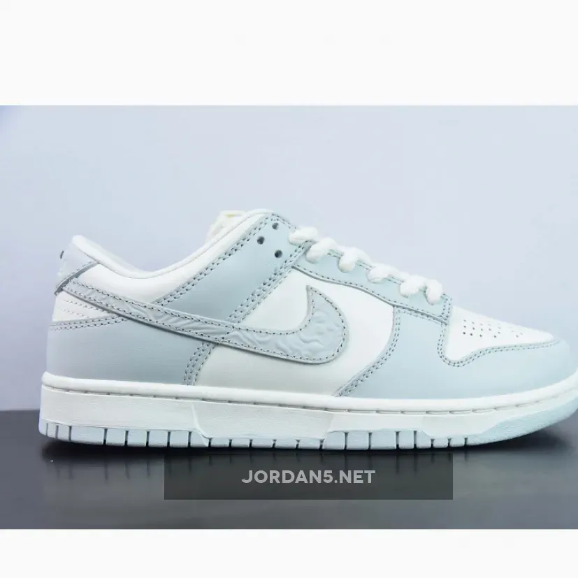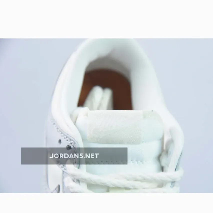 The laces are the most obvious change, with their thick rope profile similar to the set we saw on the Premium Goods x Nike Air Force 1 Low “The Sophia”. Then your eyes drop onto the Swoosh, where a paisley textured finish has been applied to the logo, feeding into the subtle but intricate motif that surrounds the design. On the heel tab, you can find a script Nike font debossed into the panel with a chrome dot applied to the “i”, a detail we first saw on the Air Force 1 Low Chrome Swoosh “Sail” release. Another detail adopted from the AF1 Chrome Swoosh edition is on the toe box, where a decorative pattern replaces the regular perforations that Nike normally issues on the Dunk.
