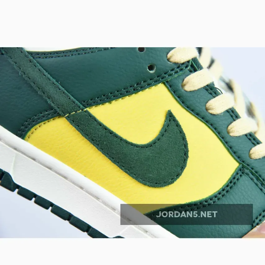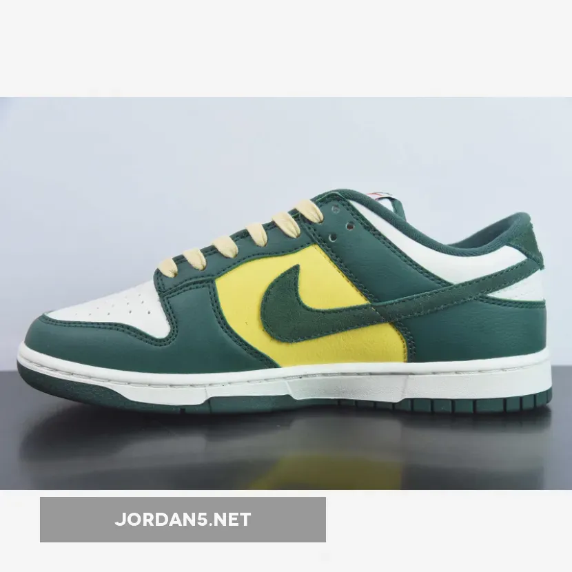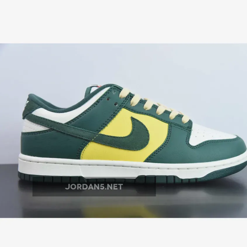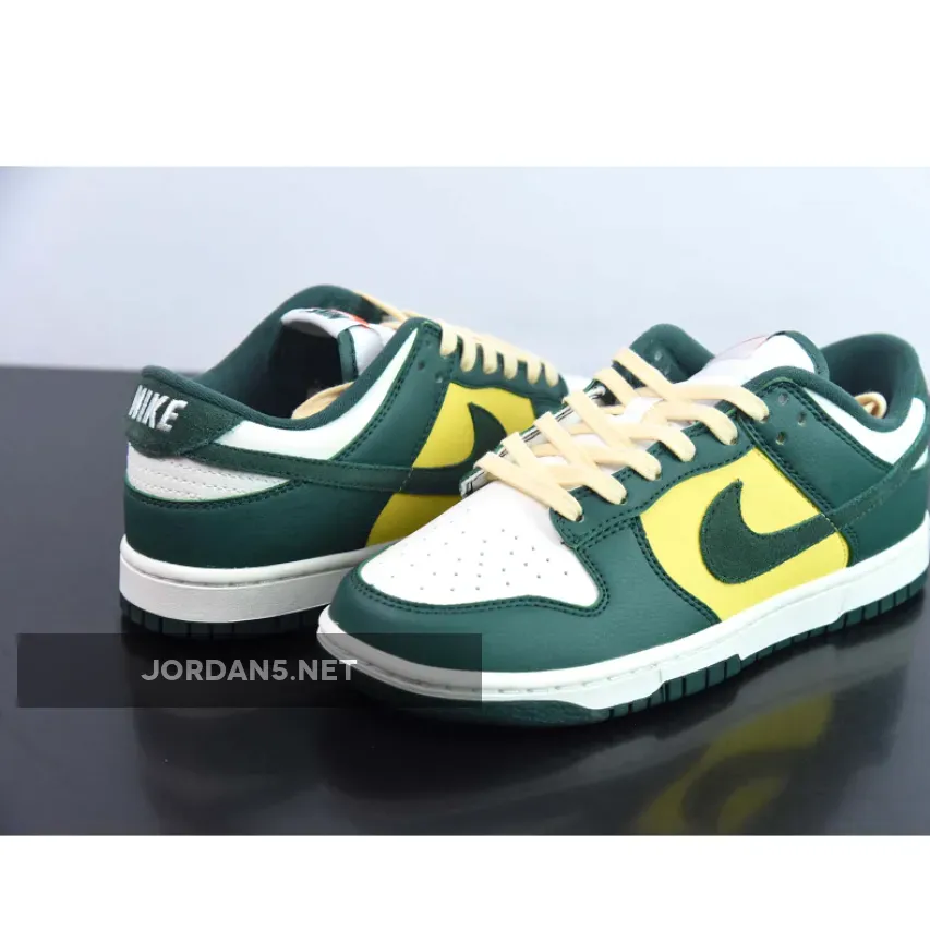 This Nike Dunk Low features a Sail, Opti Yellow, Picante Red, and Noble Green color combination. Constructed with tumbled leather and shaggy suede Swoosh logos and heels. Highlighting the pair, we have ‘Athletic Company’ branding on the insoles. Green then lands on the overlays, Sail fills in the tongue, ankle, toe, and midsole, with Yellow on the panels. Finishing the look is a Green rubber outsole.