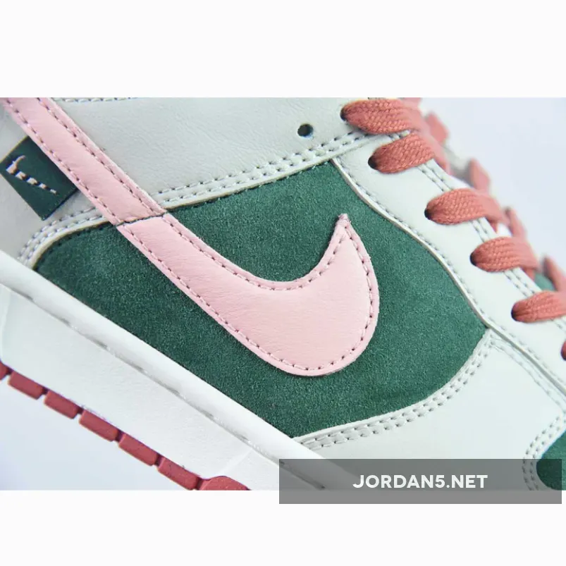 This offering will stray away from the others, featuring a mismatched design from the left to right pair, sporting a mirrored reflection of each other. Both feature a beige leather and dark green mossy suede, either on the base or overlay system. The right shoe, on the other hand, flips the narrative with mossy green velvety leather and white suede overlays. Soft pink Swoosh logos are placed across the side panelings on both while clay-colored touches are featured on the lacing system and tongue labels.
