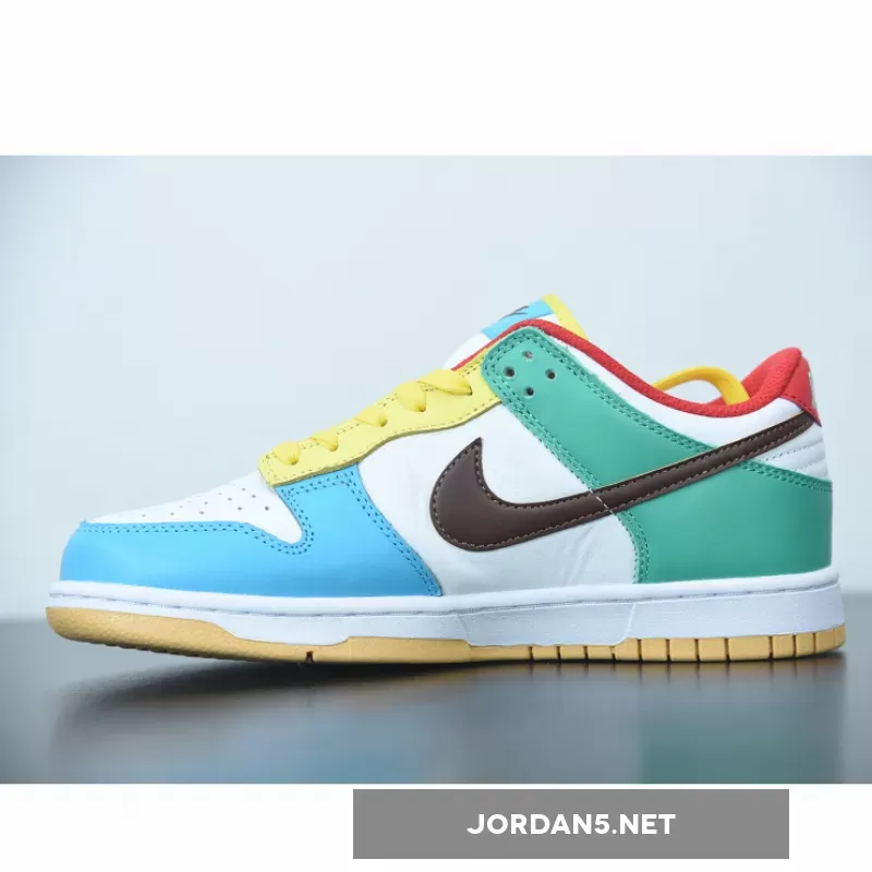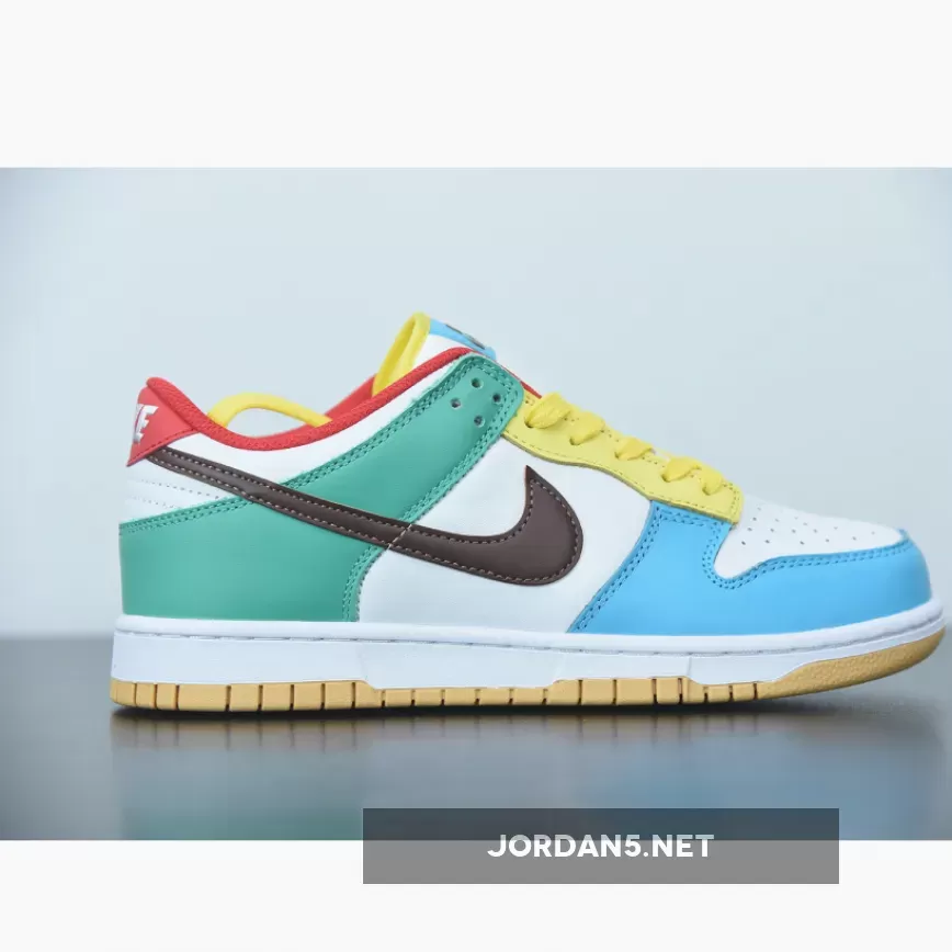 The Nike Dunk Low Free 99 Asymmetric White Multi is one of a whole load of stunning Dunk colourways that we absolutely love. The Nike Dunk shoe was introduced back in 1985 and the hype currently surrounding it is powerful than it has ever been before. Official images of this new Nike Dunk iteration are now live so read on for more.This brand new iteration flaunts a smooth leather construction from heel to toe while boasting a range of different colours arranged asymmetrically on both sides for a mismatched look. Colour-blocked with aqua blue, pine green, buttery yellow, and scarlet red overlays throughout, Nike’s iconic Swoosh logo across the lateral and medial sidewall appears in a dark brown town. Don’t forget to use our Nike Dunk size guidee to know how they fit and feel free to browse the rest of our site for your daily footwear fix.