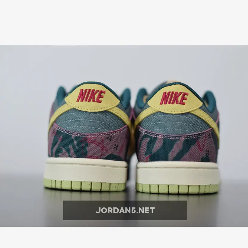 Dressed in a Multi-Color, Midnight Turquoise, Cardinal Red, and Lemon Wash color scheme. This Nike Dunk Low appears to use eco-friendly material from Nike’s Space Hippie line that features a Grind Rubber on the outsole. Other details include a canvas upper covered in various prints highlighted with Yellow Swooshes, tongues, and heel tabs.