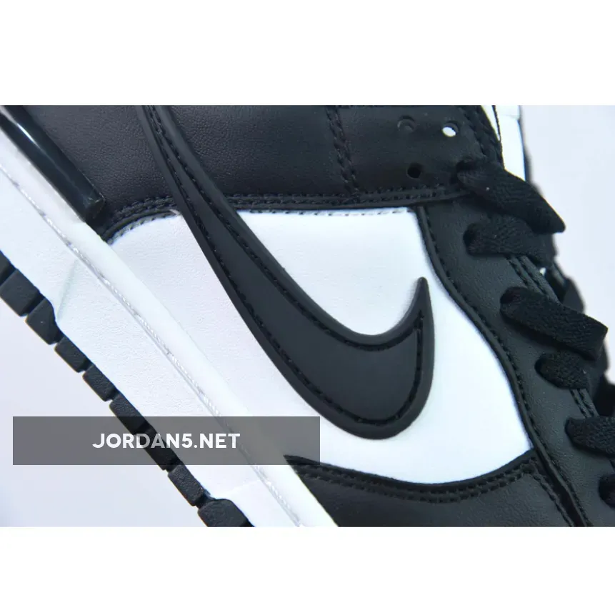 Our first look at the Nike Dunk Low Twist in the Panda colorway shows the obvious which is the traditional Panda color blocking found throughout the leather upper. Smooth white leather underlays begin the design, hitting the perforated toe boxes, medials, and exaggerated heel counters. Black pebbled leather counteracts casually adorning the opposite overlays.